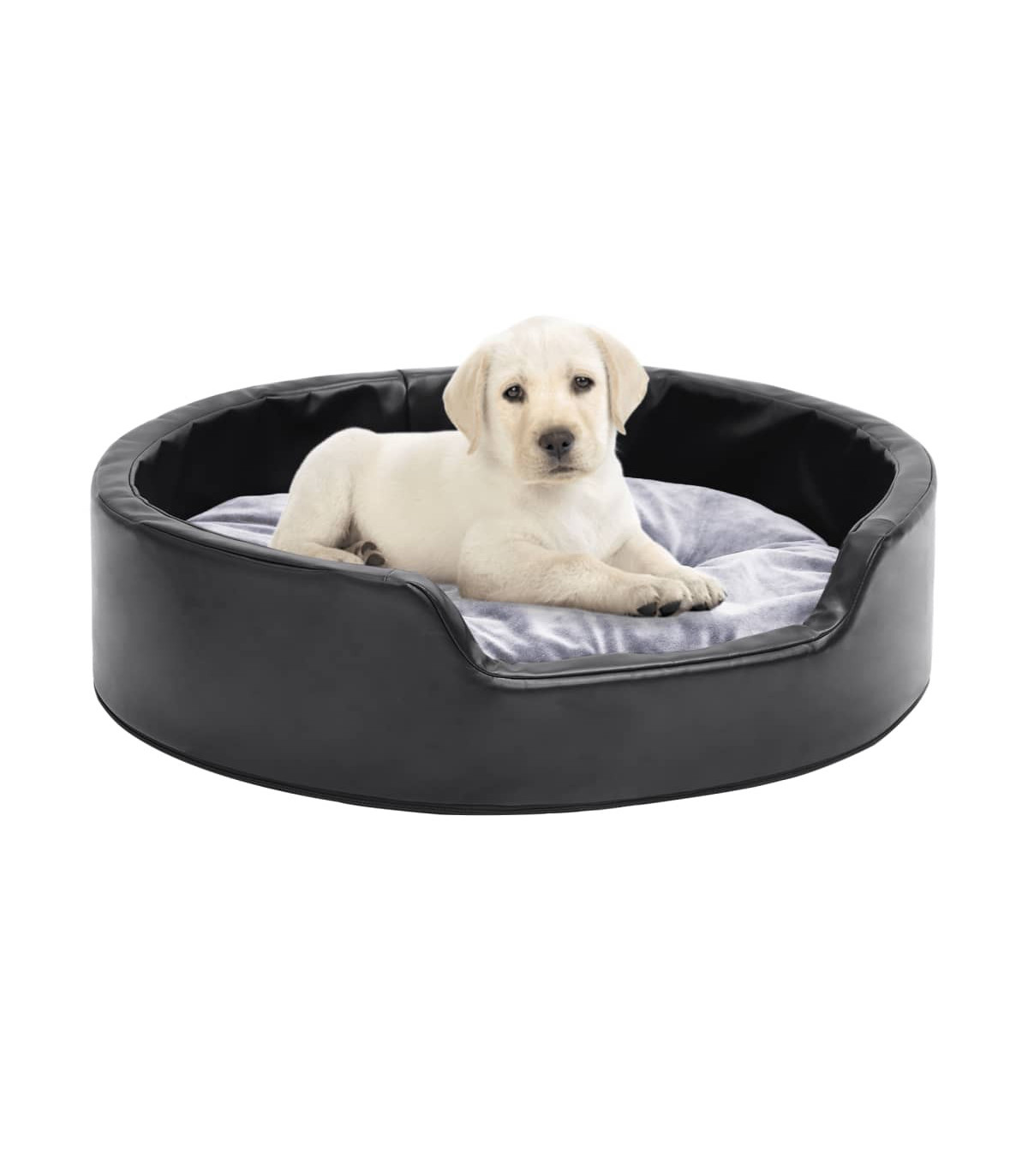Dog Bed Black and Grey 69x59x19 cm Plush and Faux Leather
