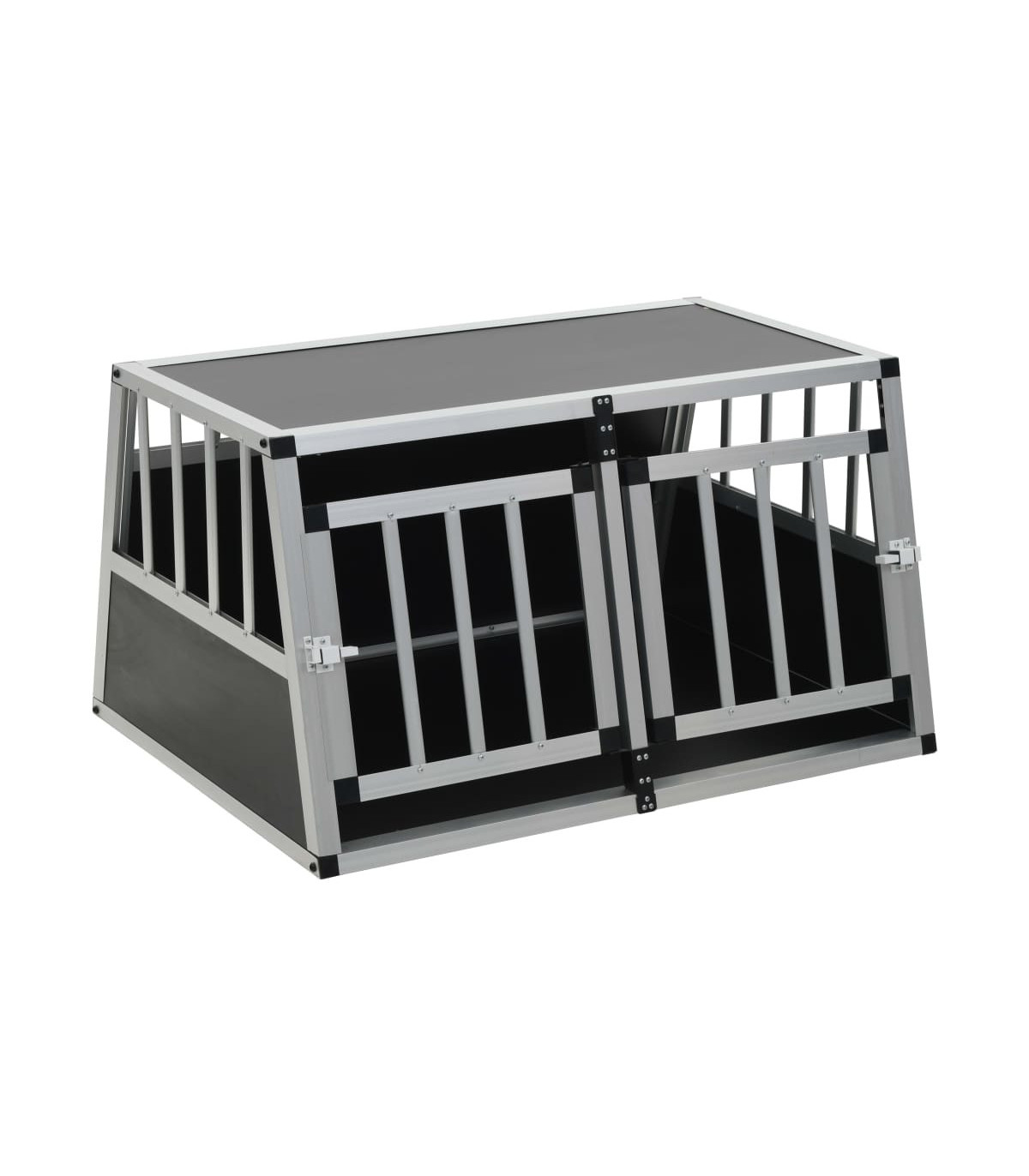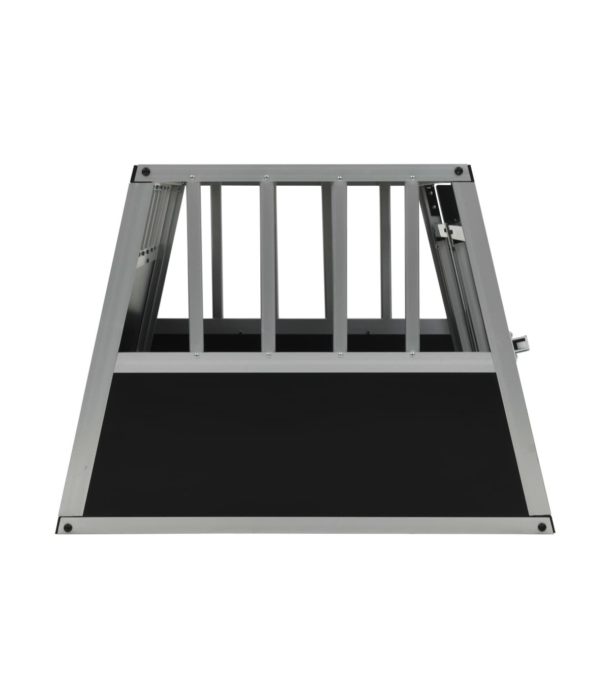 This dog cage will contribute to a safe and comfortable journey for both you and your dog. It is suitable to be used in the trunk of your car. This dog house is made of aluminium and MDF, which is durable and easy to maintain. Our cage is designed with plastic corner connections to avoid any injury to your feline friend. The innovative construction of the box ensures your dog to keep an eye on its surroundings and get enough fresh air. The single door design makes it easy to get in and out. Our cage is lightweight and easy to transport in your car. This item is easy to assemble. Warning: We advise measuring your car carefully to avoid a situation where this dog cage does not fit your car.