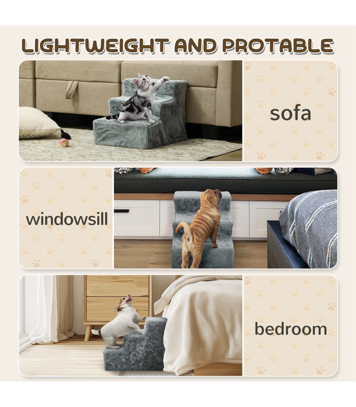 ? With four steps, it is robust and stable, supporting pets who are older or have mobility issues