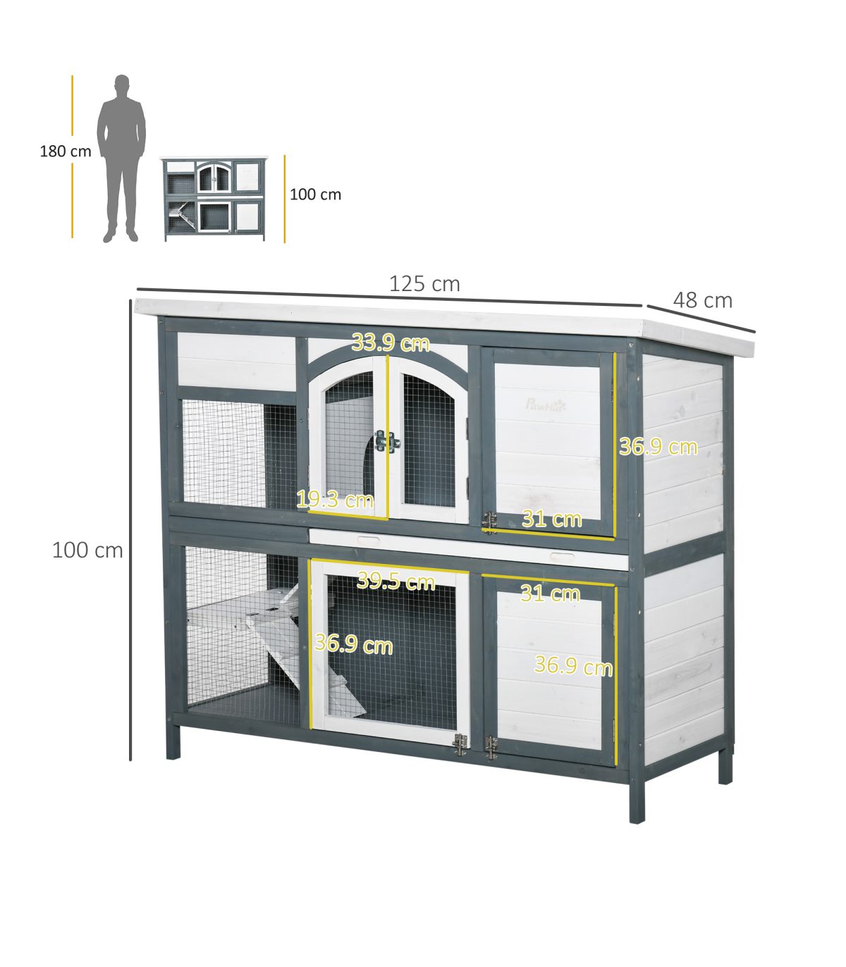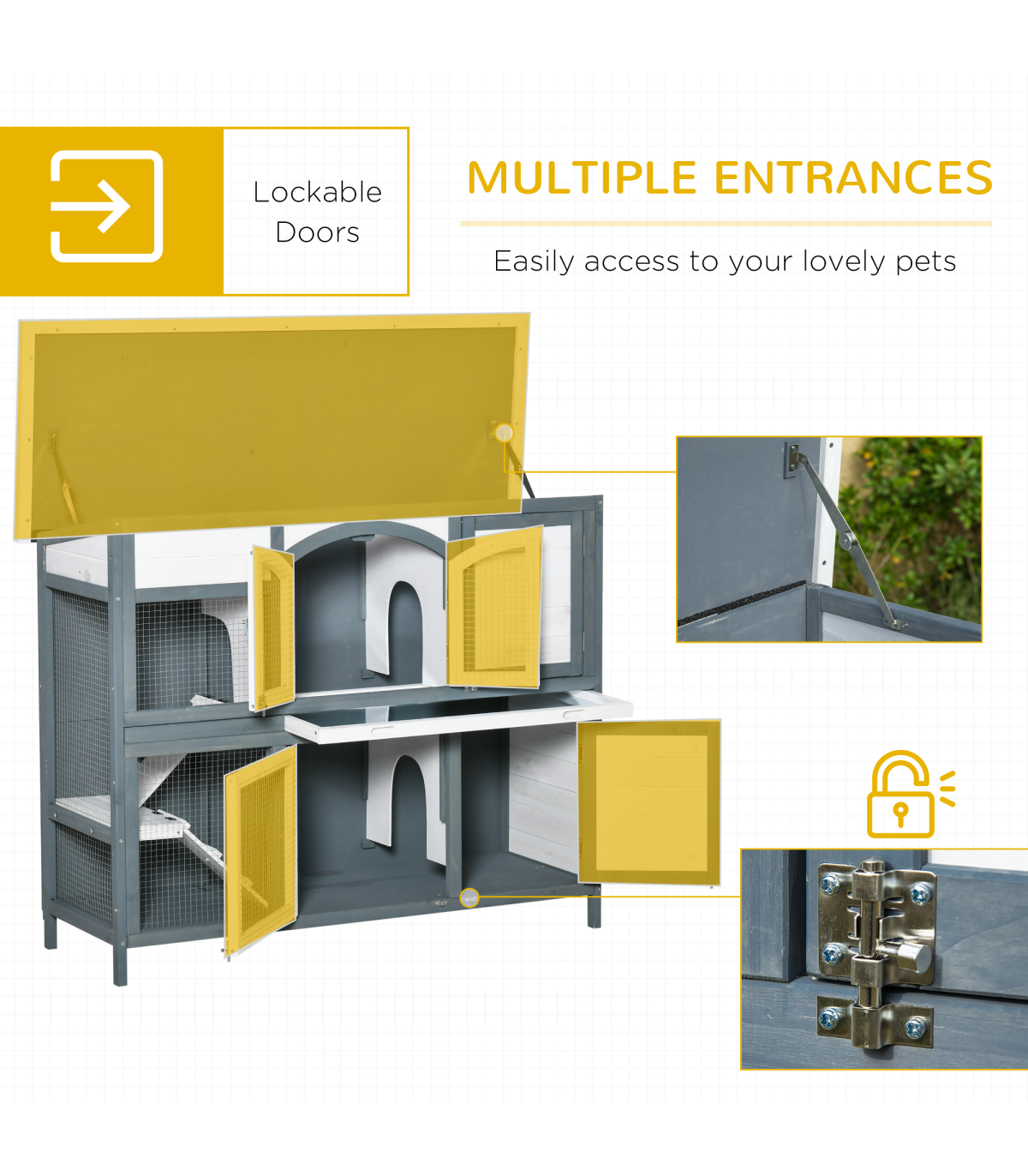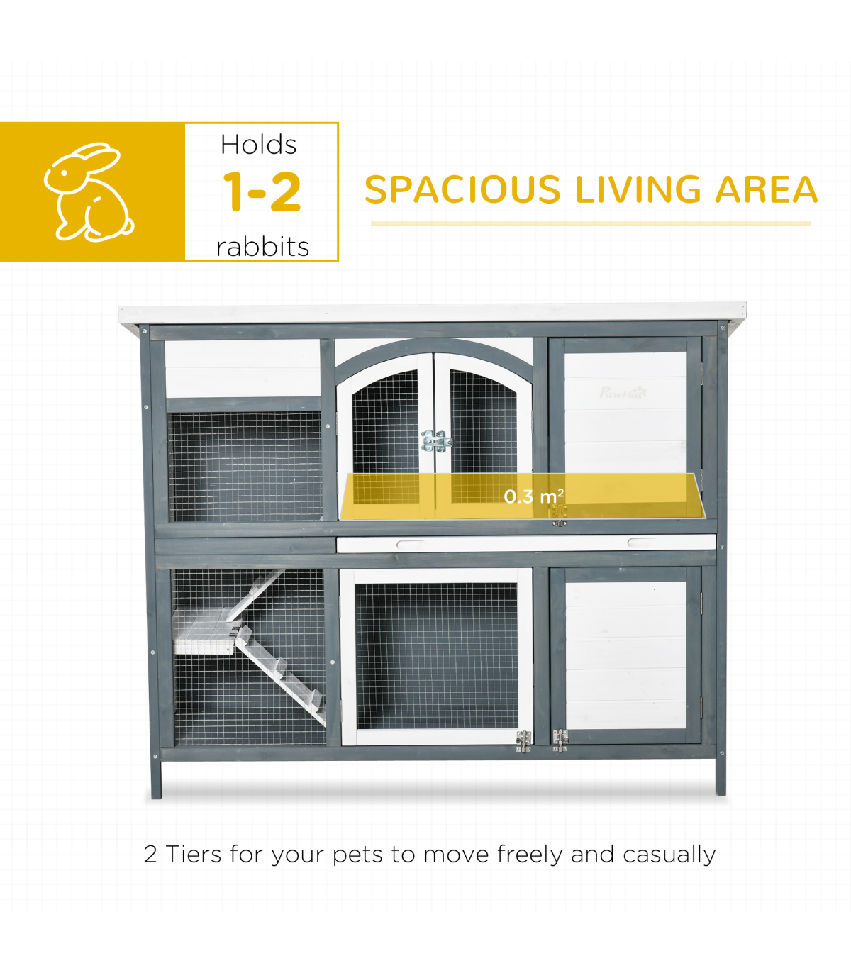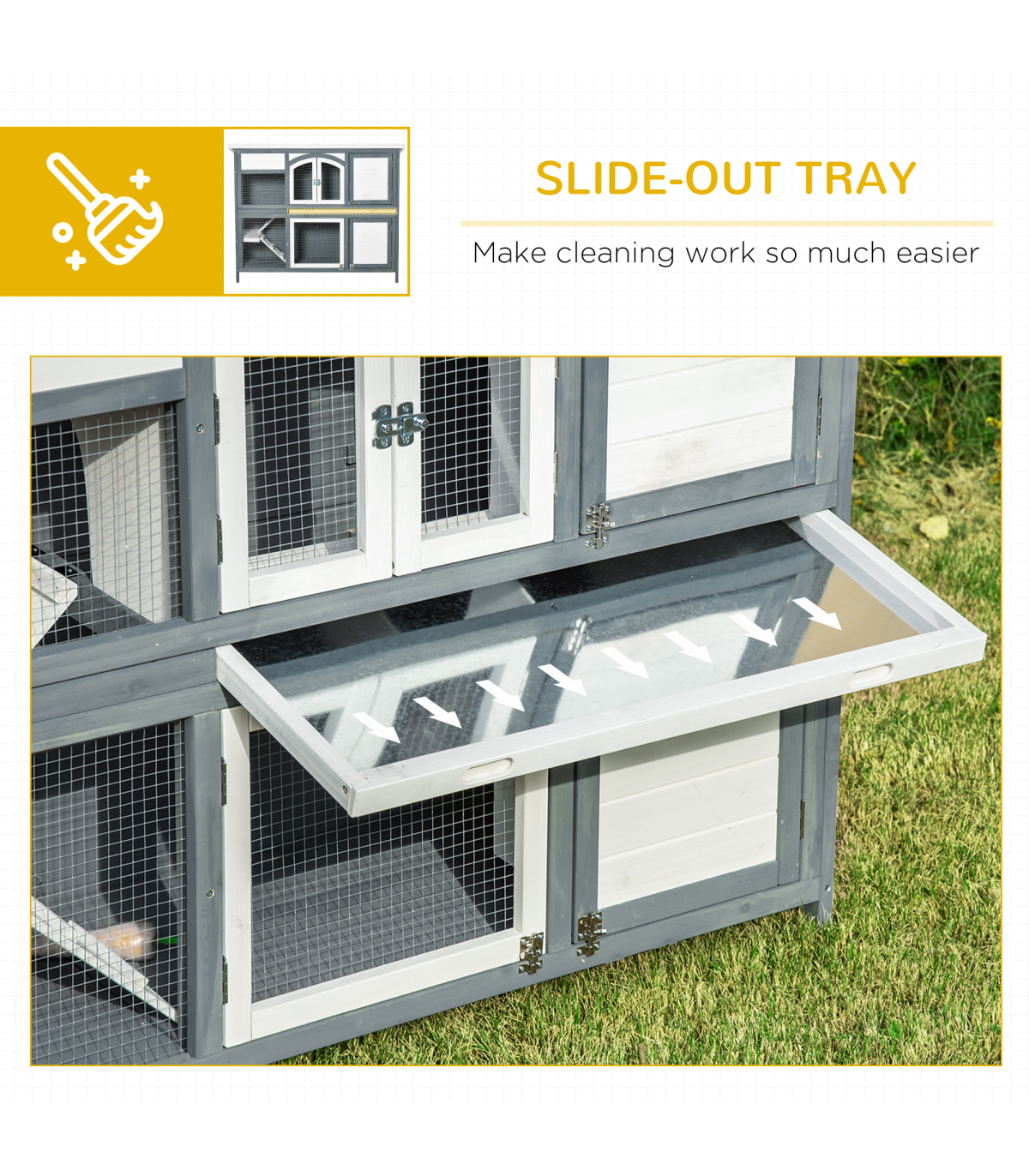 Two-Tier Wooden Rabbit Hutch Bunny Run w/ Openable Roof, Slide-Out Tray, Ramp