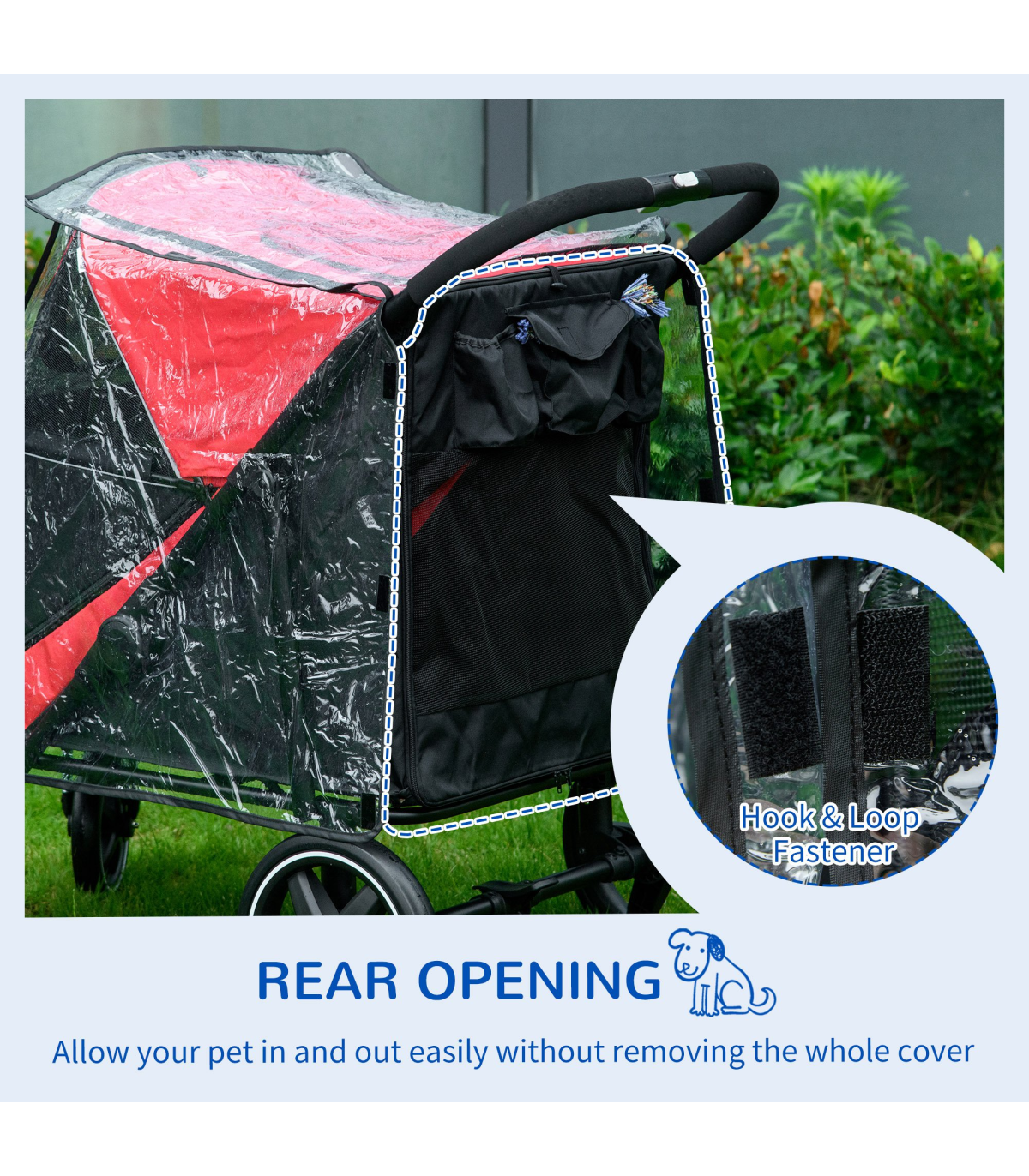 Rain Cover for Dog Pram Stroller Buggy, for Large, Medium Dogs with Rear Entry
