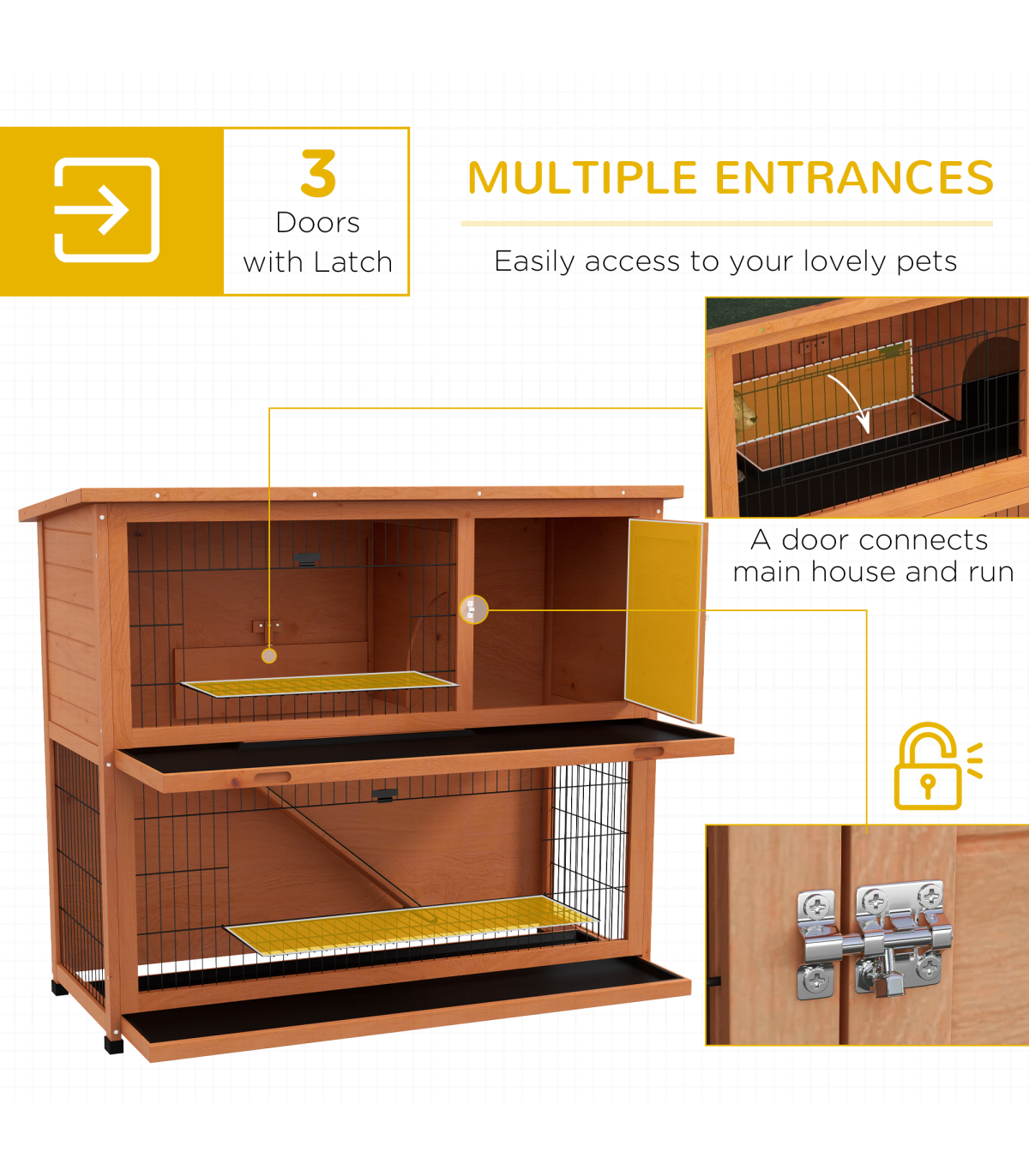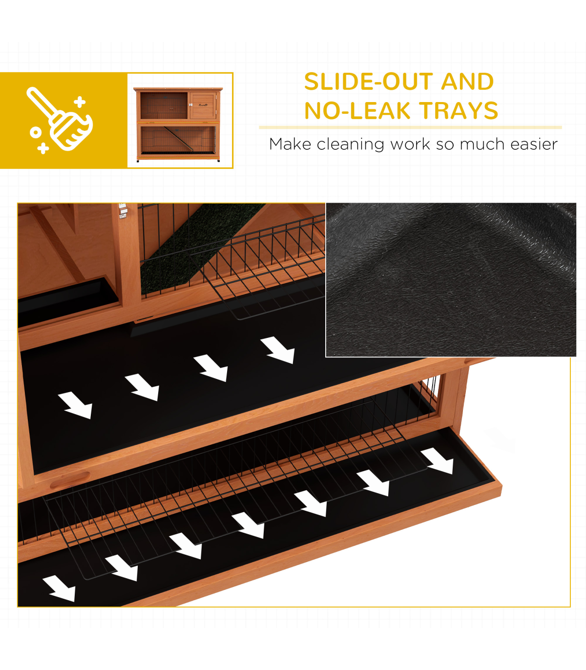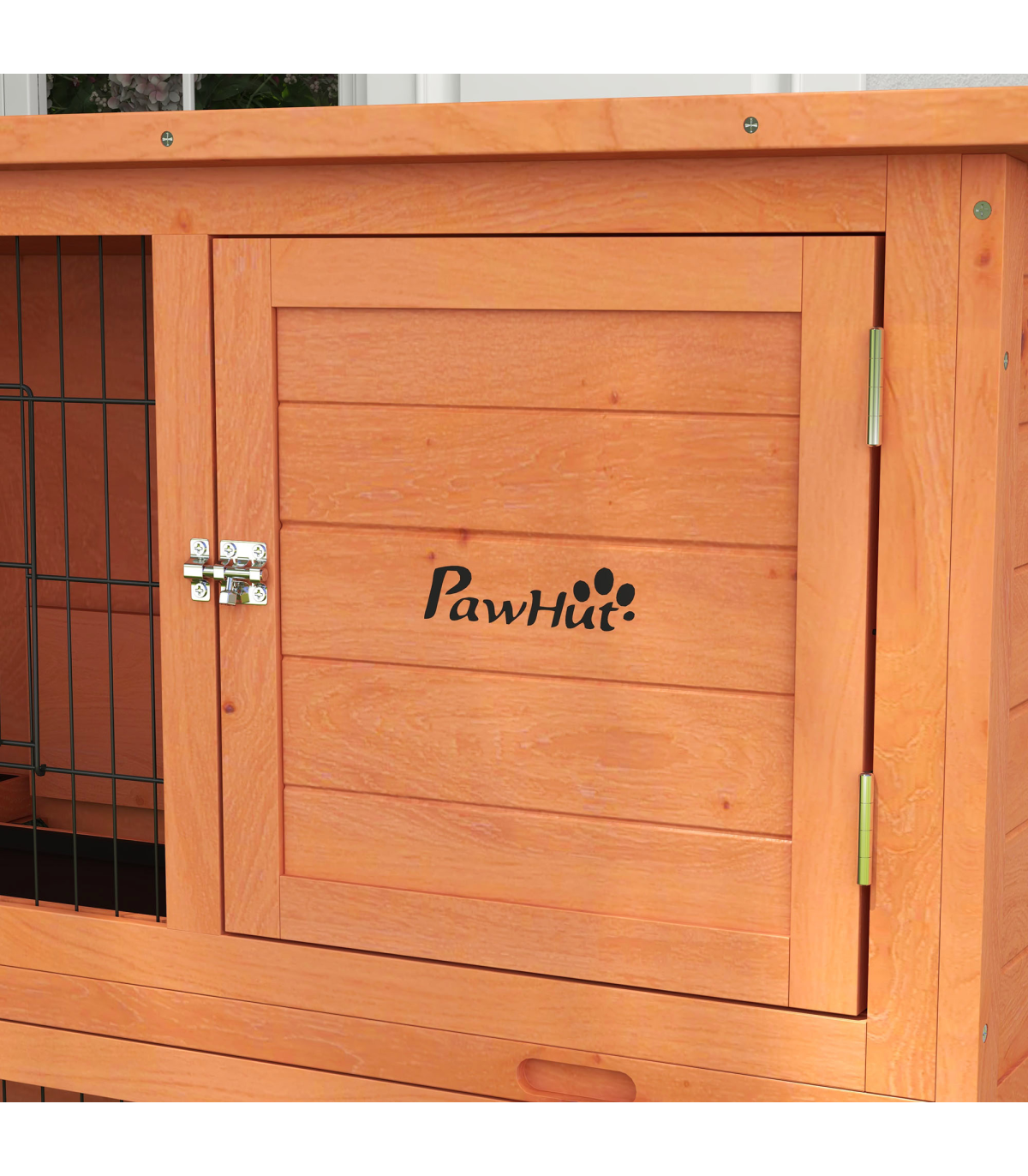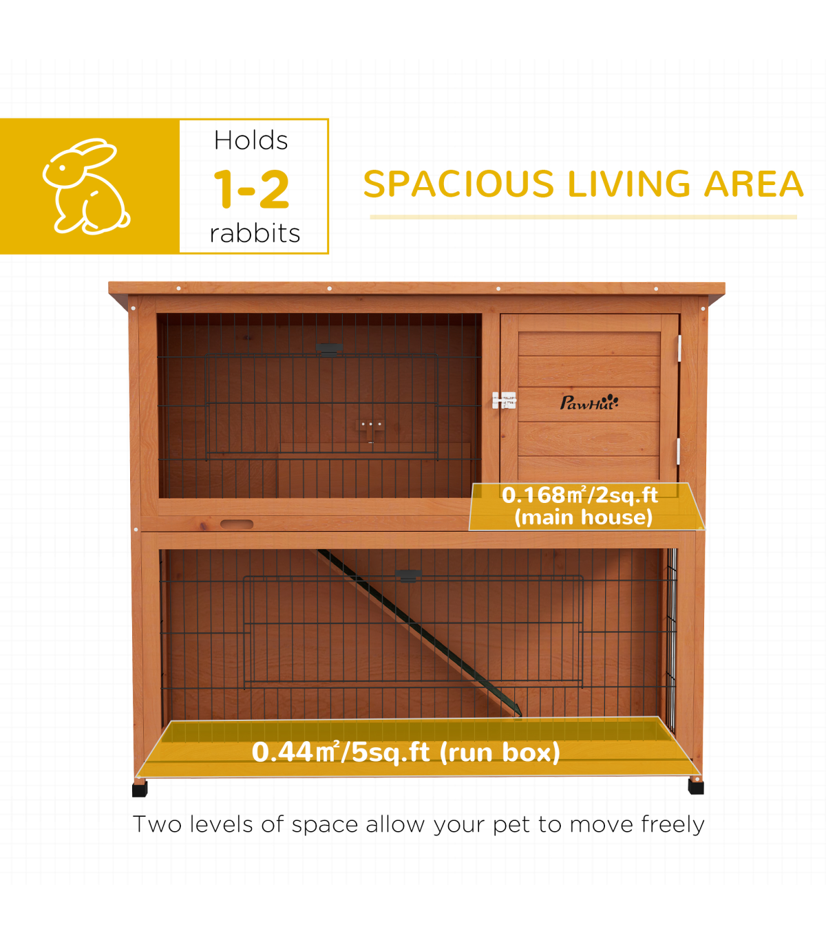 PawHut Wooden Rabbit Hutch Antiseptic Outdoor, for 1-2 Rabbits, Orange