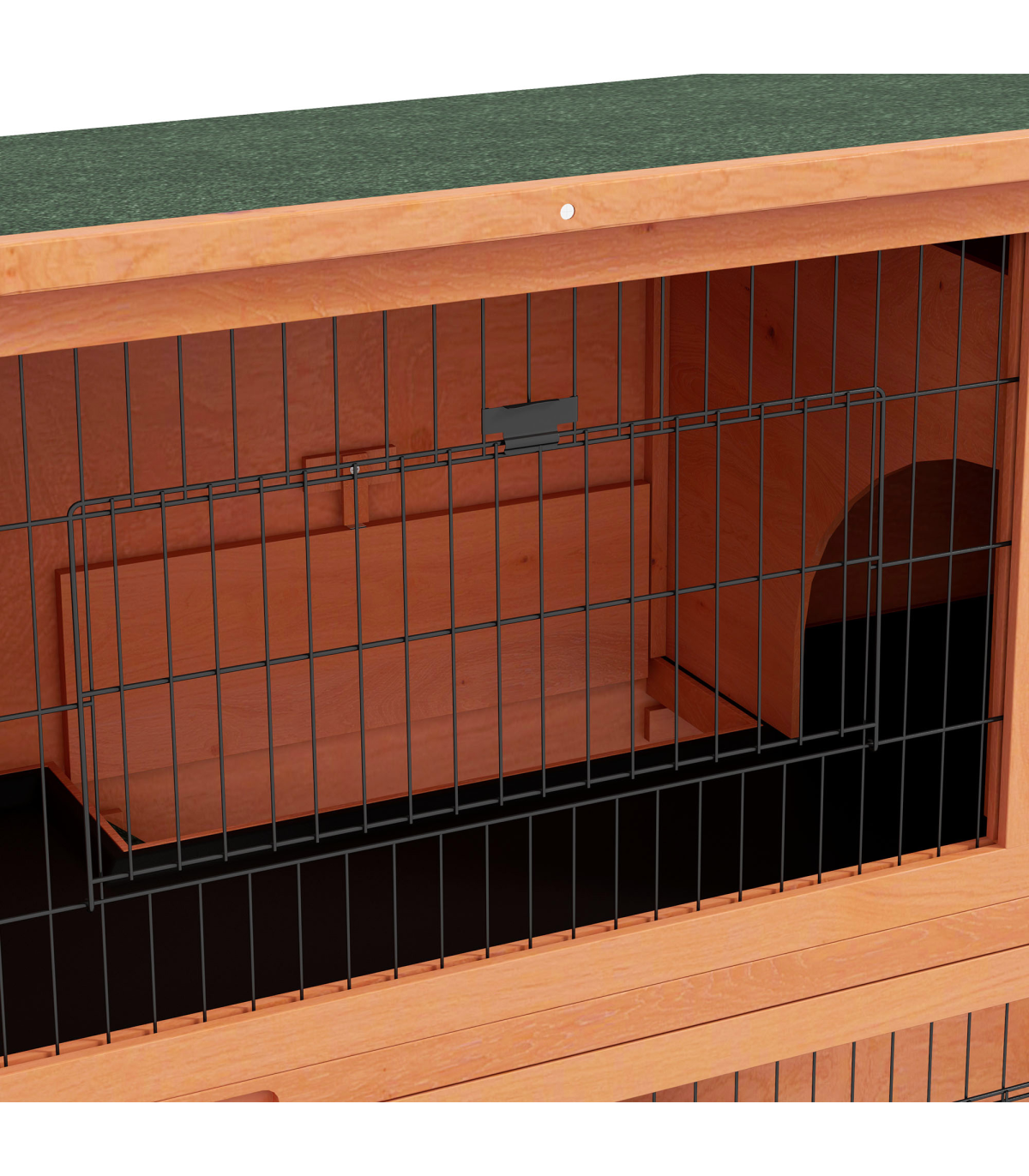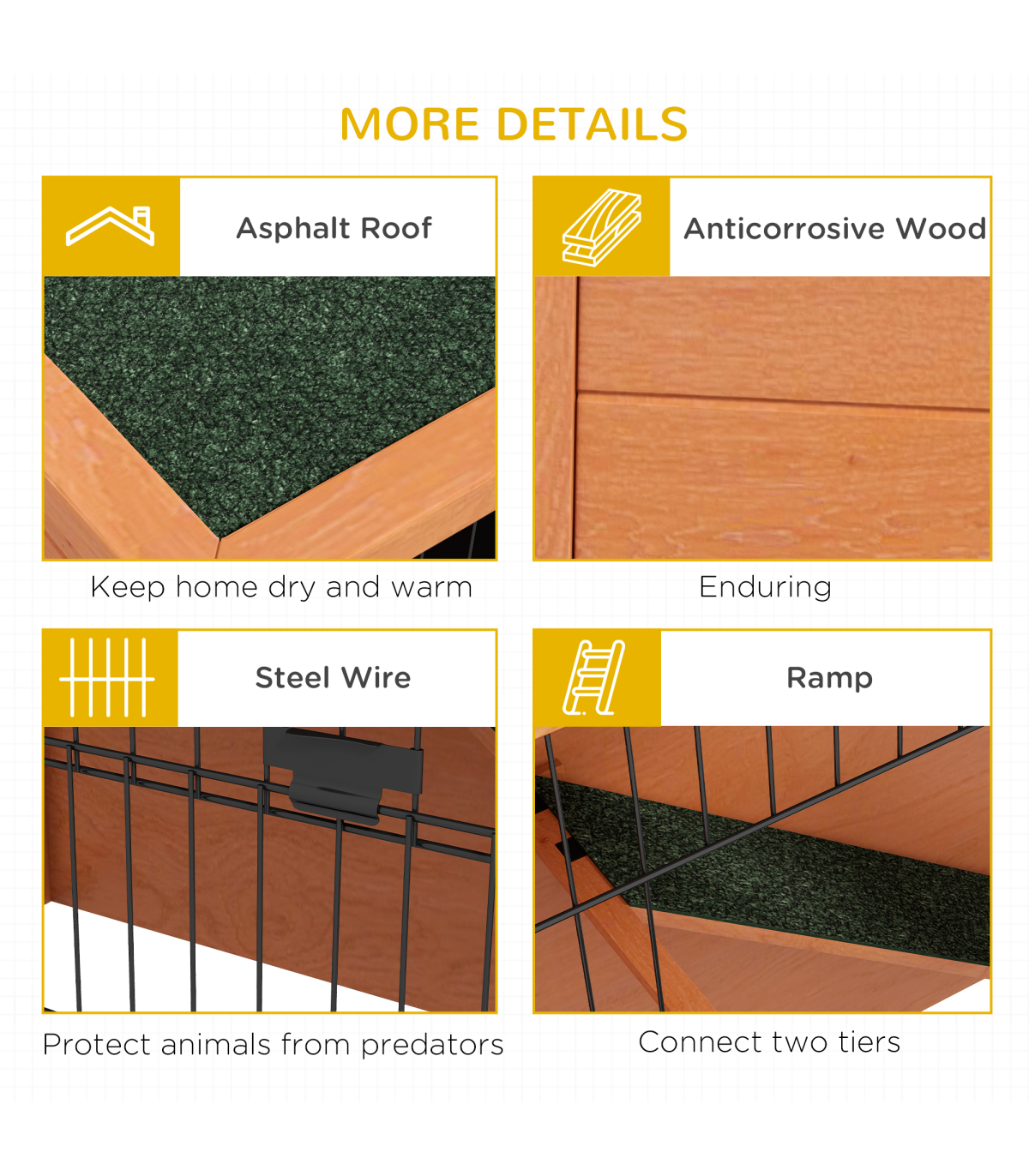 Introducing spacious living for small pets, this PawHut rabbit hutch boats generous room in the main house and run area. Your pets will enjoy freedom on the upper and lower tiers, creating a comfortable surrounding for hopping, playing and exercising. Asphalt roof with anti-corrosion treatment, it's suitable for outdoor use. Create a happy home, where pets can burn energy, indulge in playful activities and relax � a snug and thriving living space.