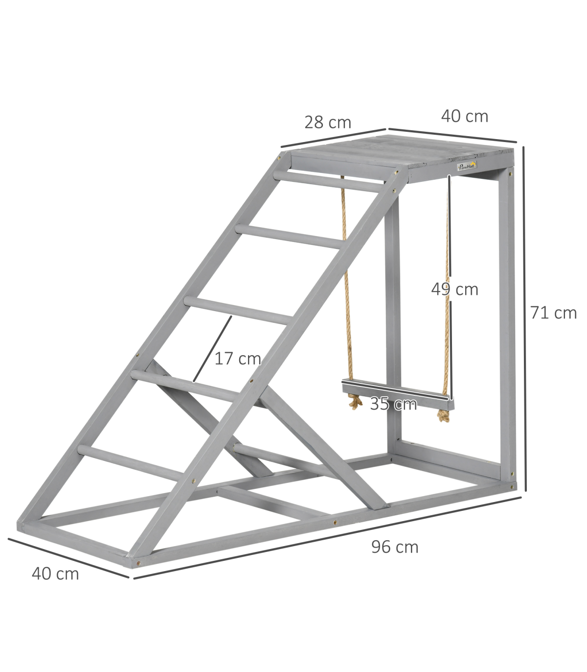 ? Ladder Dimensions: 95L x 40Wcm, Perch: ?18mm, Spacing: 17cm