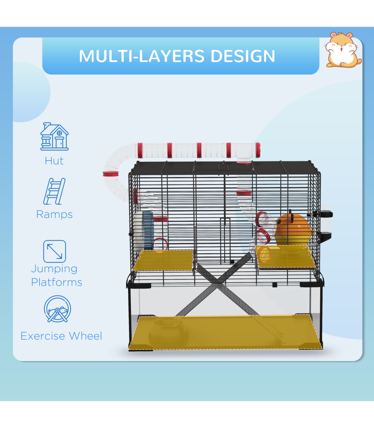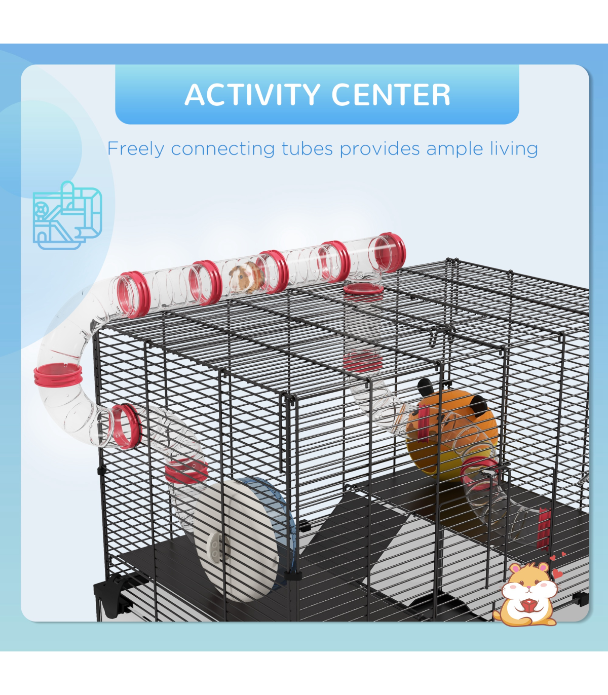 PawHut Hamster Cage w/ Tubes, Ramps, Platforms, Hut, 60 x 40 x 57cm