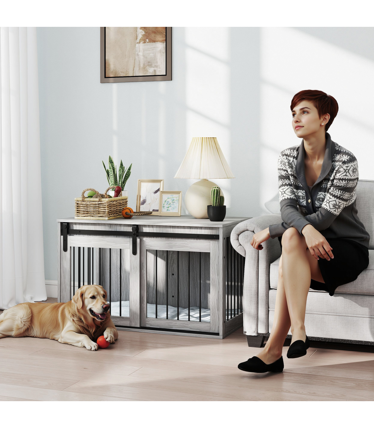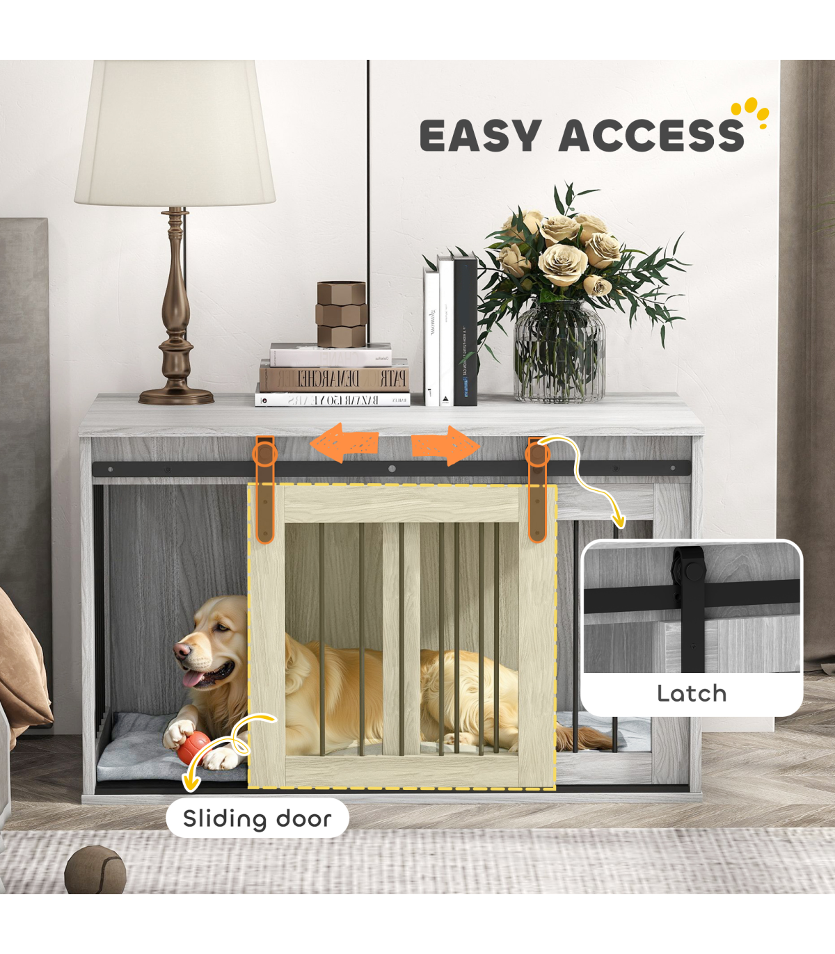 ● A sliding with latch, ensuring pets remain safely inside when needed