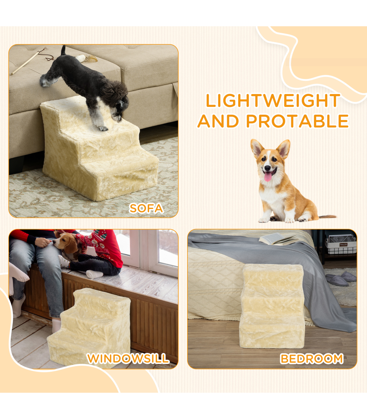 ● With three steps, it is robust and stable, supporting pets who are older or have mobility issues