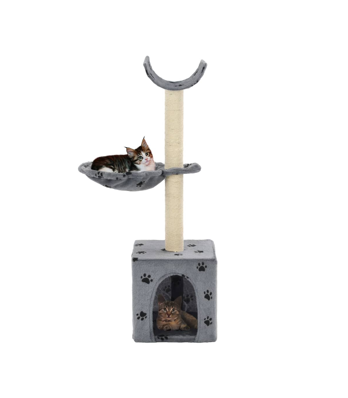 vidaXL Cat Tree with Sisal Scratching Posts 105 cm Paw Prints Grey