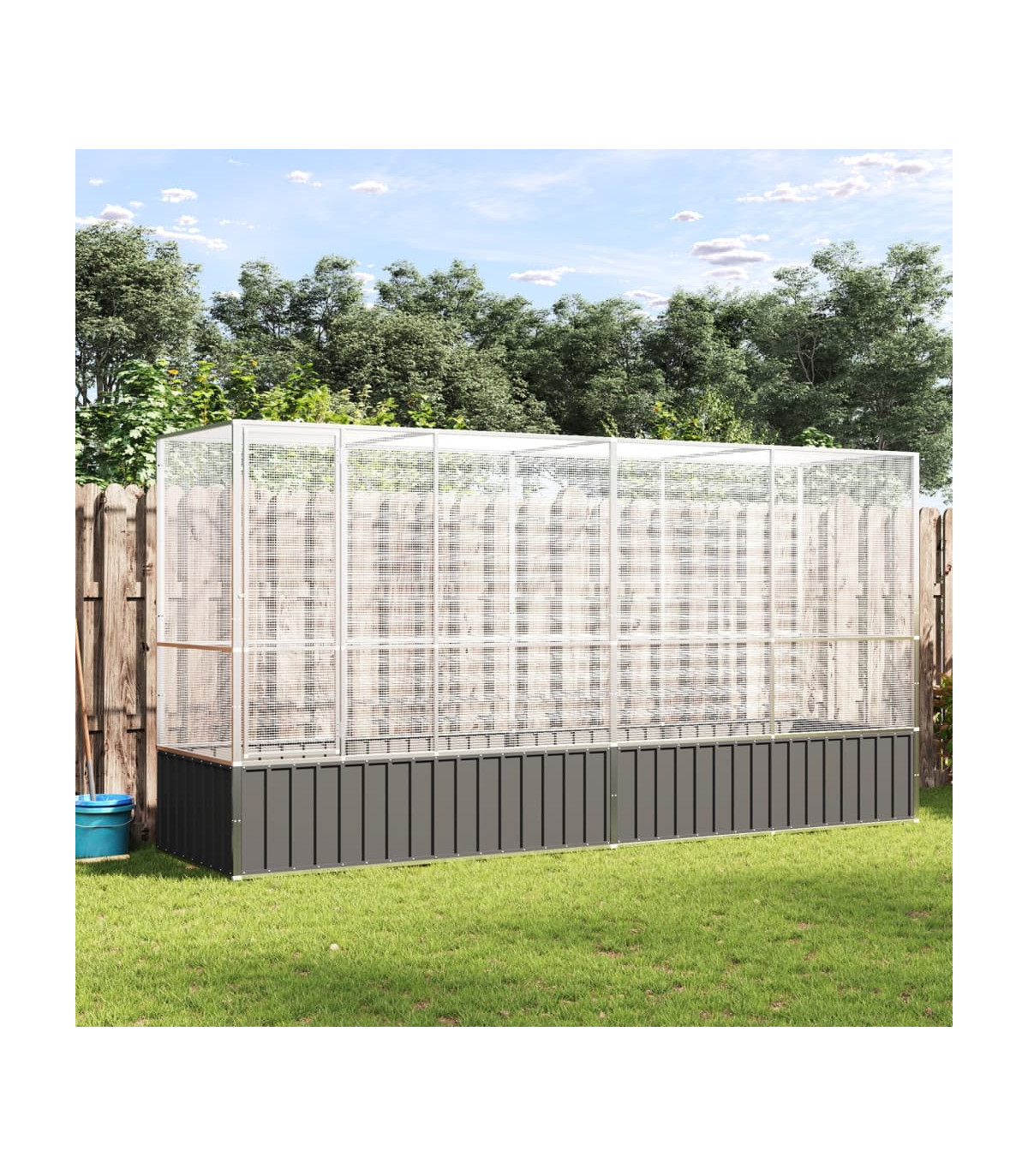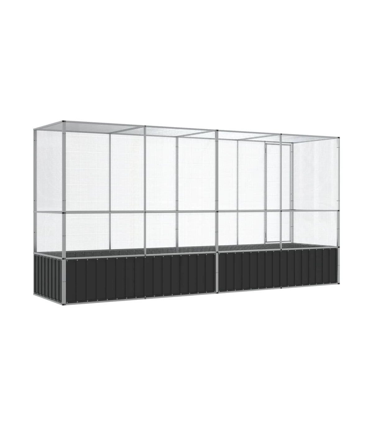 This aviary with extension provides a cosy and comfortable place for your birds to fly and play safely. Sturdy frame: Steel is an exceptionally hard and strong material. It offers sturdiness and stability. Galvanisation provides better protection against corrosion and is useful for products that'll be used outdoors as well as in harsh environments. Thanks to the sturdy galvanised steel construction, this bird aviary is built to last.Steel mesh grid: The budgie cage is equipped with steel mesh grids that prevent mischief and unexpected accidents. In addition, they also allow you to observe your birds daily and guarantee your birds a wide field of view and enough fresh air.Ample activity room: The parrot cage provides your birds with ample activity room to walk around, play and fly around with ease. Besides, it is also suitable for other small animals such as rabbits, ducks, chickens, geese, etc.Lockable door: The hinged door with a lockable system of the large bird cage ensures extra security and safety for your birds.