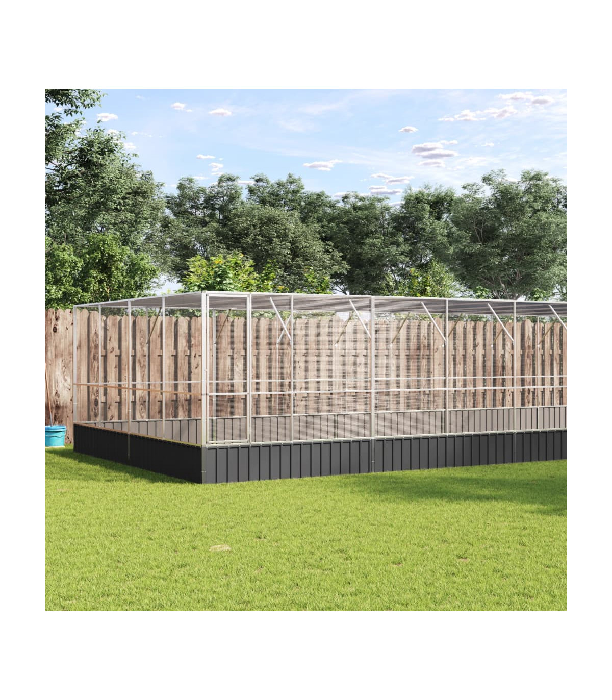 This aviary with extension provides a cosy and comfortable place for your birds to fly and play safely. Sturdy frame: Steel is an exceptionally hard and strong material. It offers sturdiness and stability. Galvanisation provides better protection against corrosion and is useful for products that'll be used outdoors as well as in harsh environments. Thanks to the sturdy galvanised steel construction, this bird aviary is built to last.Steel mesh grid: The budgie cage is equipped with steel mesh grids that prevent mischief and unexpected accidents. In addition, they also allow you to observe your birds daily and guarantee your birds a wide field of view and enough fresh air.Ample activity room: The parrot cage provides your birds with ample activity room to walk around, play and fly around with ease. Besides, it is also suitable for other small animals such as rabbits, ducks, chickens, geese, etc.Lockable door: The hinged door with a lockable system of the large bird cage ensures extra security and safety for your birds.