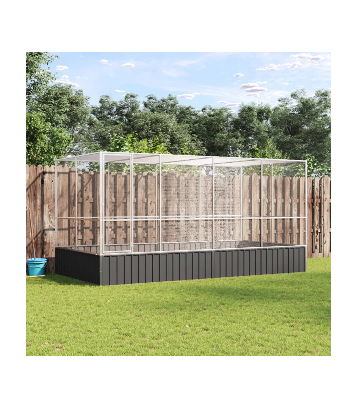 This aviary with extension provides a cosy and comfortable place for your birds to fly and play safely. Sturdy frame: Steel is an exceptionally hard and strong material. It offers sturdiness and stability. Galvanisation provides better protection against corrosion and is useful for products that'll be used outdoors as well as in harsh environments. Thanks to the sturdy galvanised steel construction, this bird aviary is built to last.Steel mesh grid: The budgie cage is equipped with steel mesh grids that prevent mischief and unexpected accidents. In addition, they also allow you to observe your birds daily and guarantee your birds a wide field of view and enough fresh air.Ample activity room: The parrot cage provides your birds with ample activity room to walk around, play and fly around with ease. Besides, it is also suitable for other small animals such as rabbits, ducks, chickens, geese, etc.Lockable door: The hinged door with a lockable system of the large bird cage ensures extra security and safety for your birds.