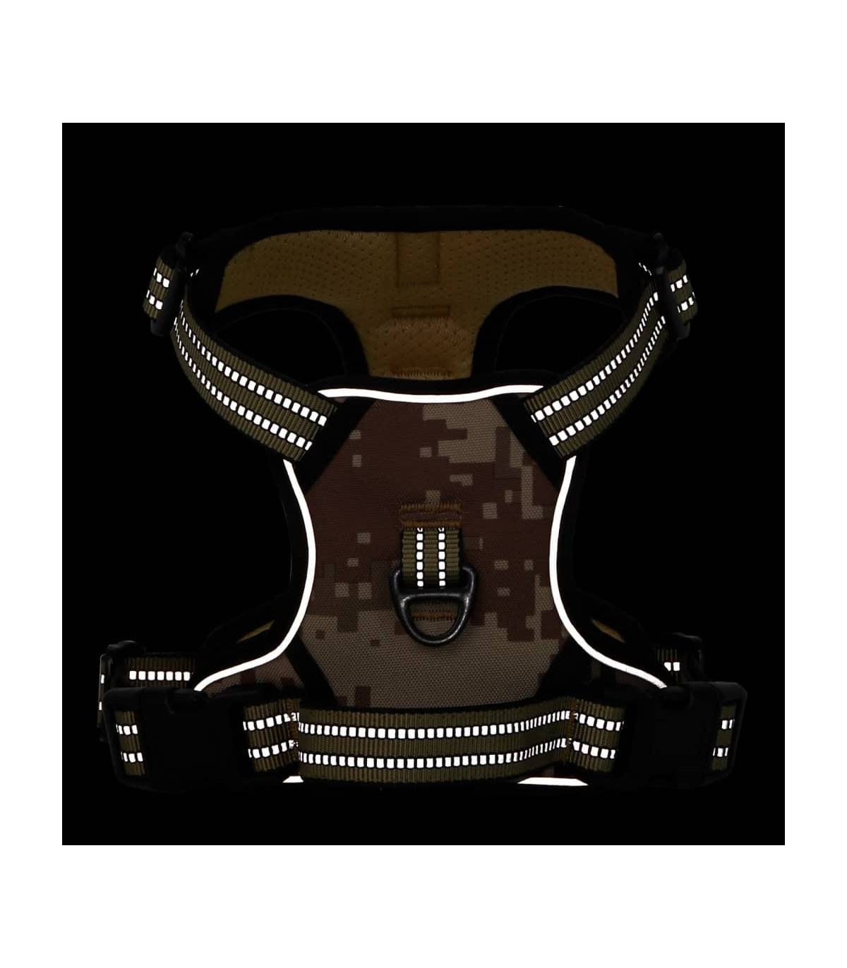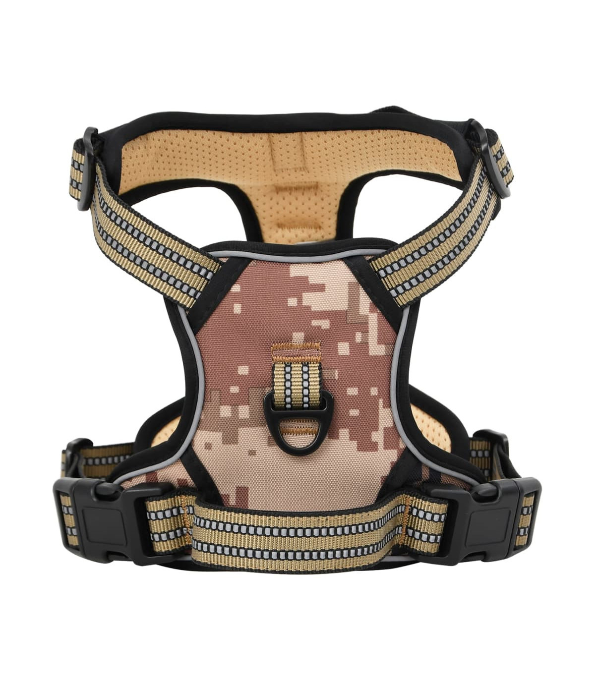 Say goodbye to pulling and hello to better control with our easy-to-use dog harness. Give your furry friend the best walking experience! Easy to put on and take off: This dog harness is easy to put on and take off with its 2 quick-release buckles. Simply slide the harness over your dog's head, fasten the buckles, adjust the straps, and you're good to go!Fully adjustable: This dog harness has 4 adjustable straps for a perfect fit. Customise the 2 neck and 2 chest straps for comfort and room to grow! Your dog will stay secure without slipping out or feeling choked, thanks to the even distribution of pulling force across their body.No Pull & No Choke: This dog harness has two leash rings for safer dog walks. Use the front clip to stop pulling during training, while the back ring is great for everyday walks, jogging, hiking, and more.Safe and comfortable: This dog harness is made of polyester and padded with a soft cushion to protect your dog's skin. Also, the breathable air mesh keeps your dog cool and comfy all day.Reflective strips for high visibility: This dog harness features reflective strips on its surface, ensuring a safe walk both day and night. Good to know:This product is suitable for machine and hand washing, for best results and to extend its lifespan, hand washing is recommended.