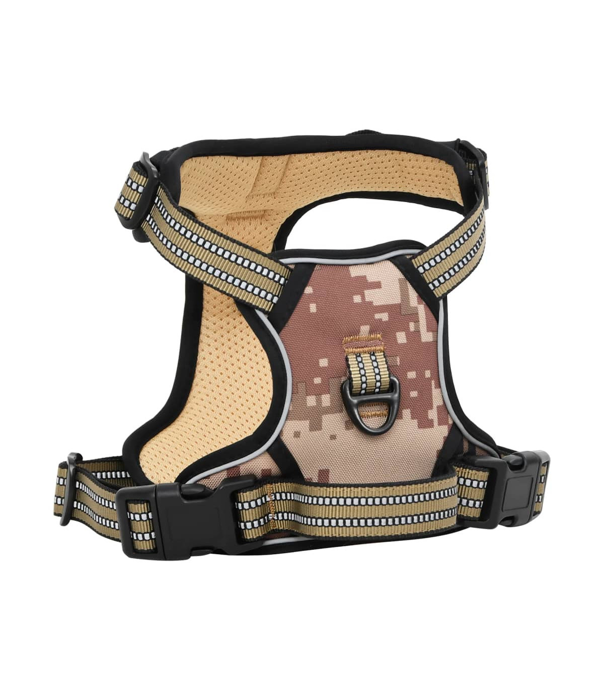 vidaXL Dog Harness with Lead & Collar Adjustable Camouflage Brown XL