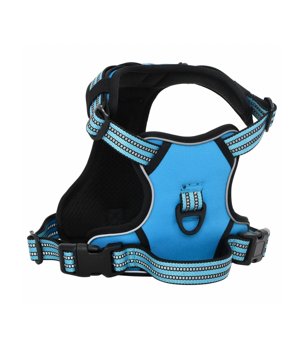 Say goodbye to pulling and hello to better control with our easy-to-use dog harness. Give your furry friend the best walking experience! Easy to put on and take off: This dog harness is easy to put on and take off with its 2 quick-release buckles. Simply slide the harness over your dog's head, fasten the buckles, adjust the straps, and you're good to go!Fully adjustable: This dog harness has 4 adjustable straps for a perfect fit. Customise the 2 neck and 2 chest straps for comfort and room to grow! Your dog will stay secure without slipping out or feeling choked, thanks to the even distribution of pulling force across their body.No Pull & No Choke: This dog harness has two leash rings for safer dog walks. Use the front clip to stop pulling during training, while the back ring is great for everyday walks, jogging, hiking, and more.Safe and comfortable: This dog harness is made of polyester and padded with a soft cushion to protect your dog's skin. Also, the breathable air mesh keeps your dog cool and comfy all day.Reflective strips for high visibility: This dog harness features reflective strips on its surface, ensuring a safe walk both day and night. Good to know:This product is suitable for machine and hand washing, for best results and to extend its lifespan, hand washing is recommended.