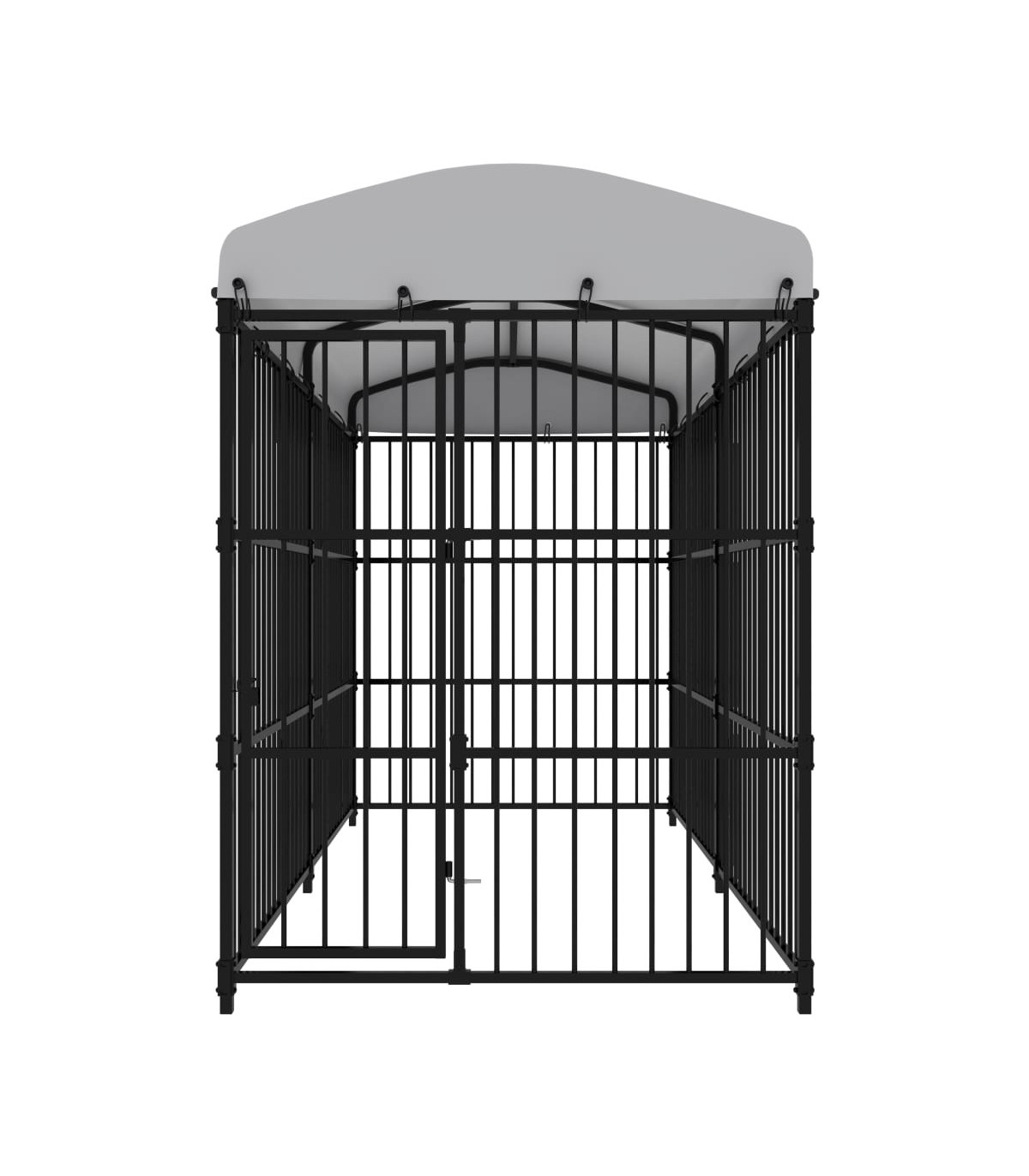 Provide safety, security and comfort for your puppy with this outdoor dog kennel. This versatile, heavy-duty dog house features multiple uses: playing, exercising, training, or simply keeping your dog safe. It will be the perfect play paradise for your furry friends! This kennel provides ample exercise space while the steel bar walls help prevent mischief and unexpected accidents while enabling ventilation. Thanks to the sturdy steel construction in powder coating, this quality dog kennel is durable and built to last. Additionally, the hinged door has a lockable latch system which ensures extra security and safety for your dogs. This kennel is easy to assemble.