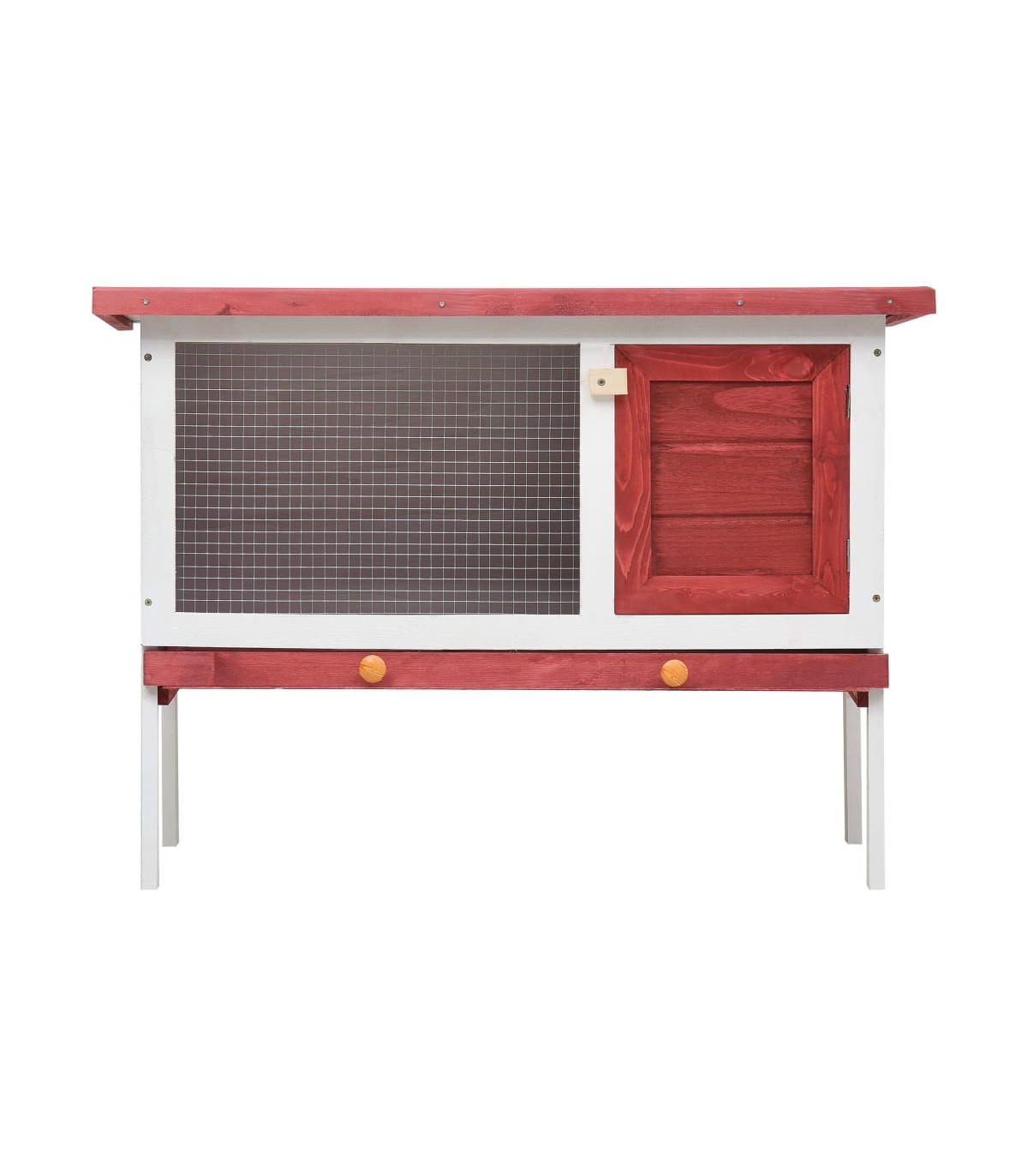 This quality hutch provides a large cozy place for keeping small animals, especially the cute rabbits. It features multiple uses: playing, exercising, training, or simply keeping your pets safely. This rabbit hutch provides your pets with plenty of exercise space while the tight iron wire mesh helps prevent mischievous behaviors and unexpected accidents. Meanwhile, the construction of iron wire grid ensures your monitoring of the pets and guarantees your pets a wide field of view and enough fresh air. The rabbit hutch is built with high-quality wood frame, making it a strong and safe enclosure that lasts for years. Its green asphalt roof keeps rain away while the cozy cubby makes the perfect sleeping quarter. And the top roof can be opened to catch or release your pets. A pull-out tray makes cleaning easy. And the door closes easily and locks with a slide-bolt latch. This wooden rabbit cage is perfect for small pets. Important note: We recommend you placing the rabbit cage under shelter. Accordingly, it will last a longer life.