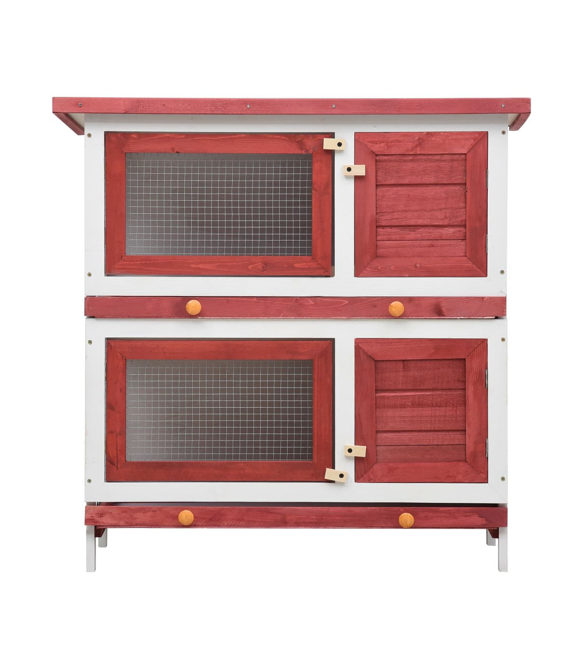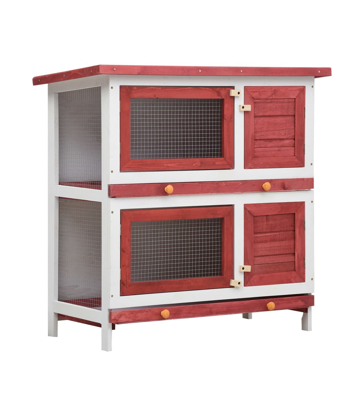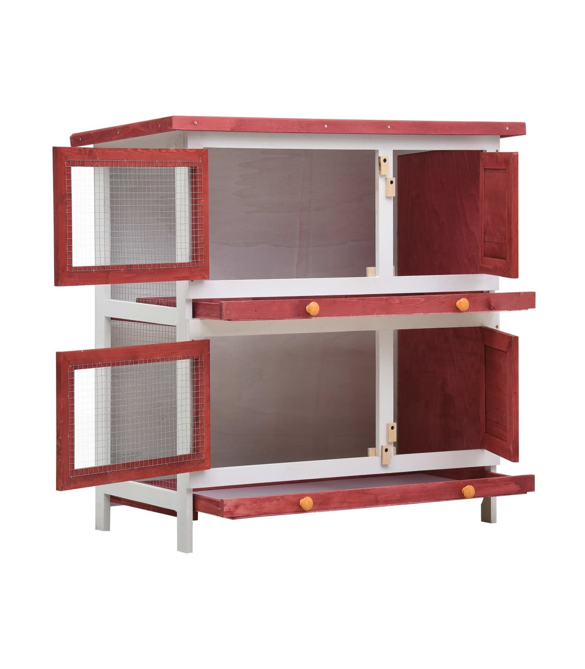 Outdoor Rabbit Hutch 4 Doors Red Wood