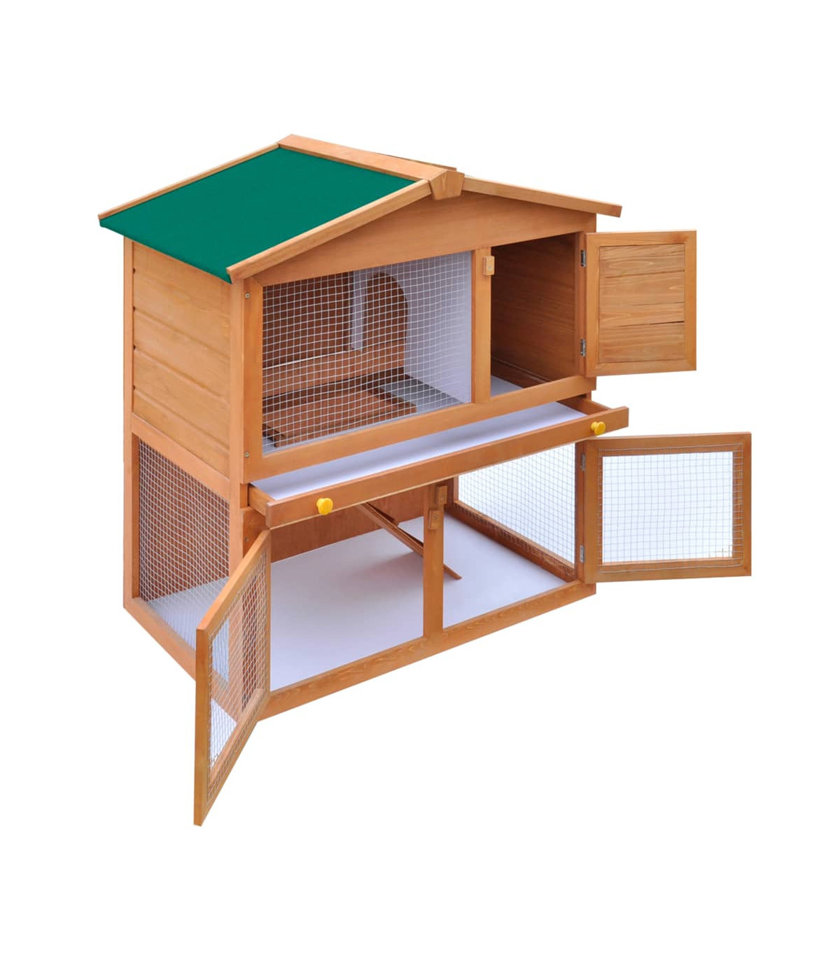 Outdoor Rabbit Hutch Small Animal House Pet Cage 3 Doors Wood