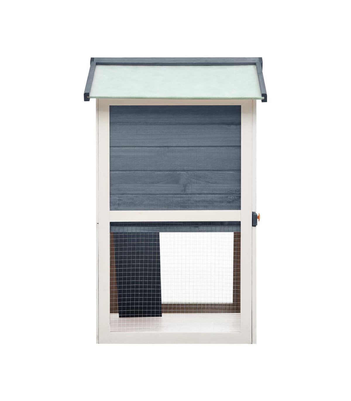 This quality hutch of 2 layers provides a large cozy place for keeping small animals, especially the cute rabbits. It features multiple uses: playing, exercising, training, or simply keeping your pets safely. This rabbit hutch provides your pets with plenty of exercise space while the tight iron wire mesh helps prevent mischievous behaviors and unexpected accidents. Meanwhile, the construction of iron wire grid ensures your monitoring of the pets and enables your pets to keep an eye on the surroundings and get enough fresh air. The rabbit hutch is built with high-quality wood frame, making it a strong and safe enclosure that lasts for years. Its green roof keeps rain away while the cozy cubby makes the perfect sleeping area. An easy-climb ramp leads from the lower ground level to the upper floor. A pull-out tray makes cleaning easy. And the doors close easily and lock with slide-bolt latches. This wooden rabbit cage is perfect for small pets. Important note: We recommend you placing the rabbit cage under shelter. Accordingly, it will last a longer life.
