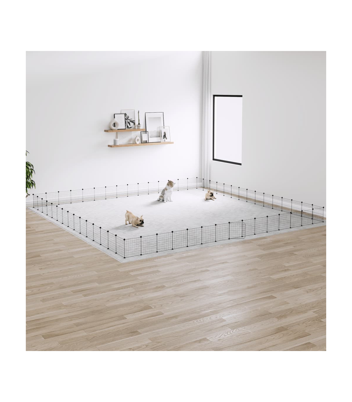 This trusty pet cage provides a spacious and safe enclosed space for your lovely pets to exercise, play and rest. Sturdy material: The animal cage is made of powder-coated steel, sturdy and durable, ensuring years of use with little maintenance.DIY assembly: The cage features multiple panels, so you can assemble it to any shape and size you want.Spacious space: The animal cage offers plenty of place for your pets to play and rest while staying safe within the boundaries.Practical door: The pet cage also has a practical door, which makes it much more convenient to take care of your pets. Note: Each product comes with an assembly manual in the box for easy assembly.