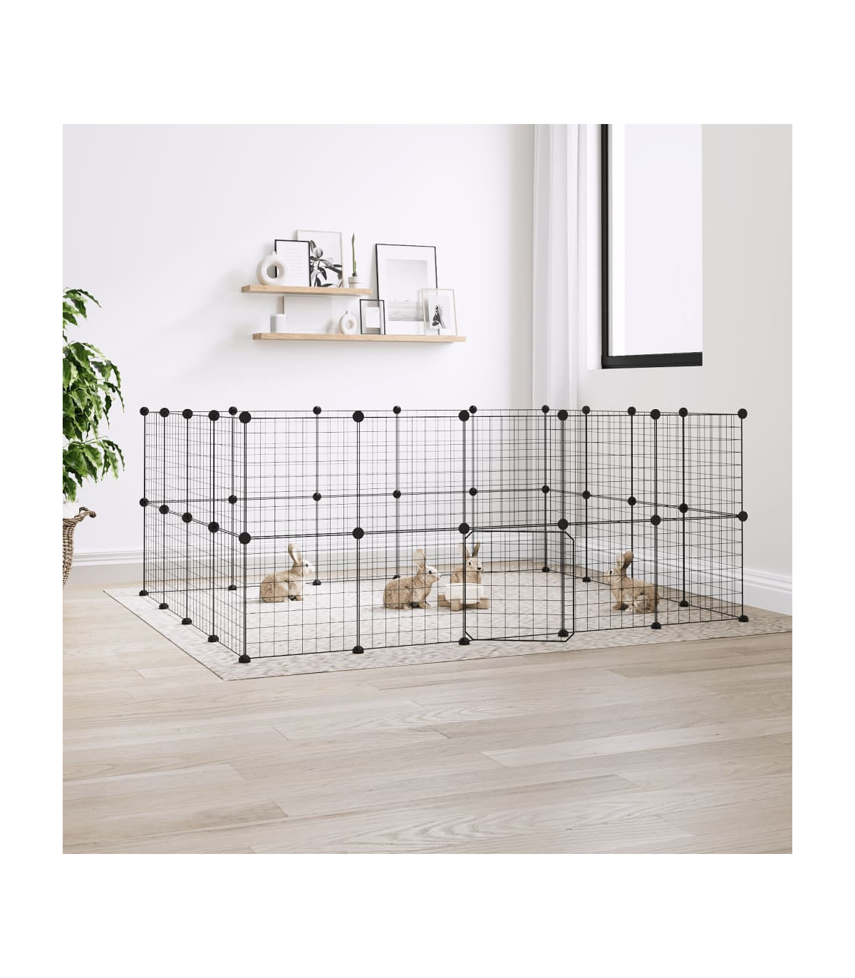 vidaXL 36-Panel Pet Cage with Door Black 35x35 cm Steel