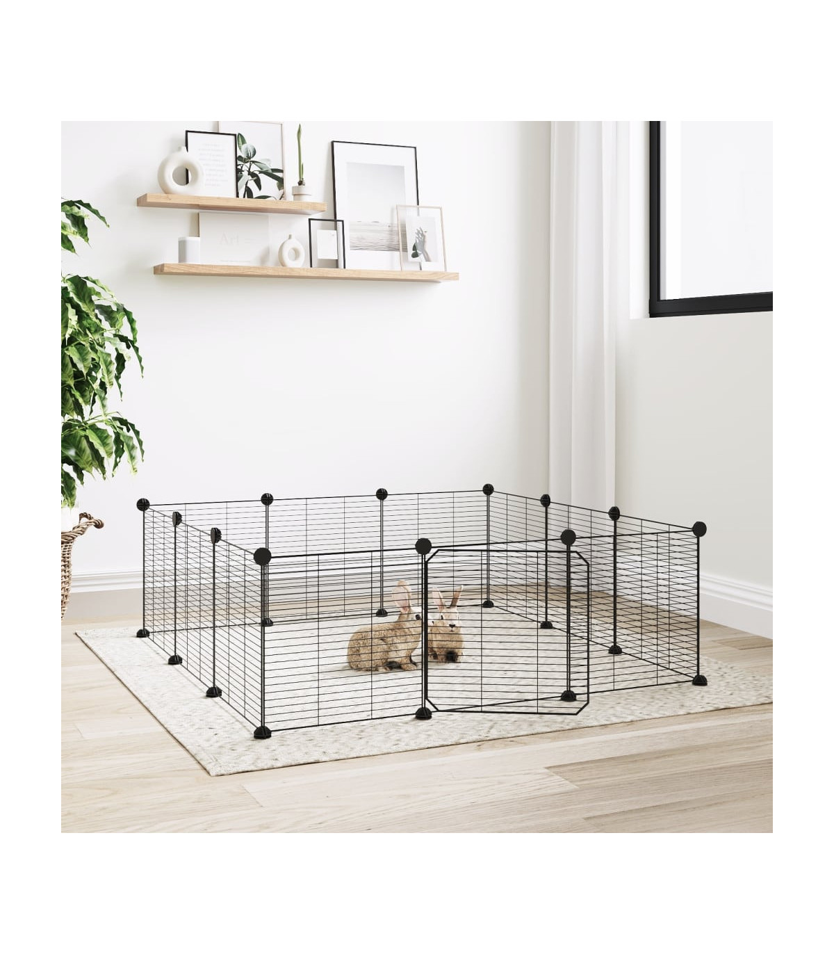 This trusty pet cage provides a spacious and safe enclosed space for your lovely pets to exercise, play and rest. Sturdy material: The animal cage is made of powder-coated steel, sturdy and durable, ensuring years of use with little maintenance.DIY assembly: The cage features multiple panels, so you can assemble it to any shape and size you want.Spacious space: The animal cage offers plenty of place for your pets to play and rest while staying safe within the boundaries.Practical door: The pet cage also has a practical door, which makes it much more convenient to take care of your pets. Note: Each product comes with an assembly manual in the box for easy assembly.