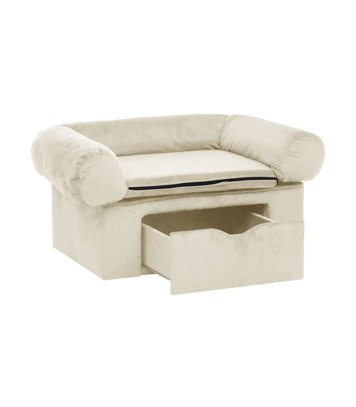 Dog Sofa with Drawer Cream 75x50x38 cm Plush