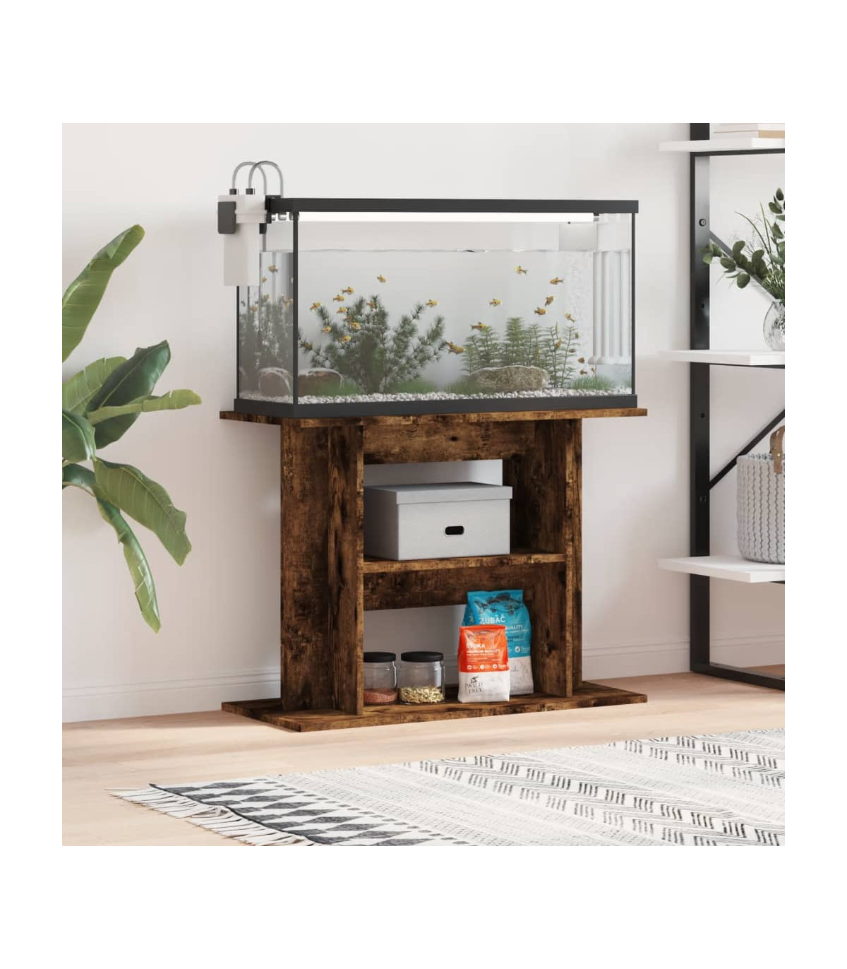 vidaXL Aquarium Stand Smoked Oak 80x35x60 cm Engineered Wood
