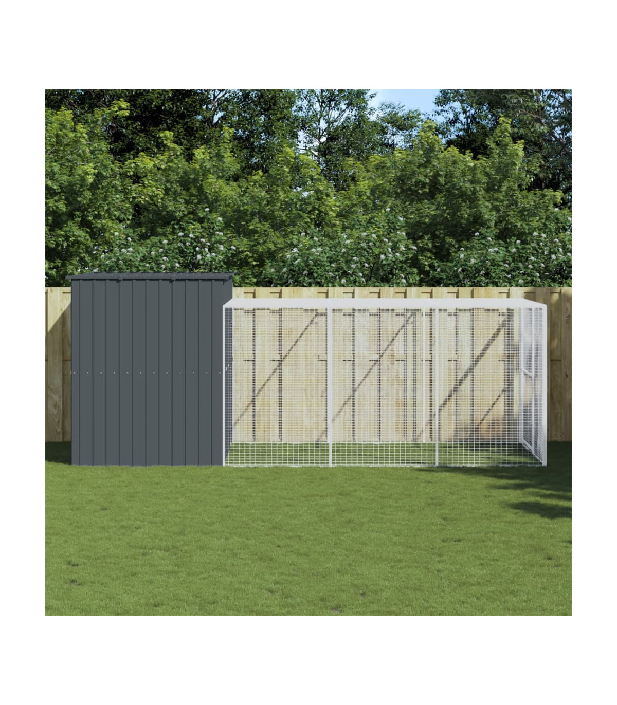 vidaXL Dog House with Run Anthracite 214x457x181 cm Galvanised Steel