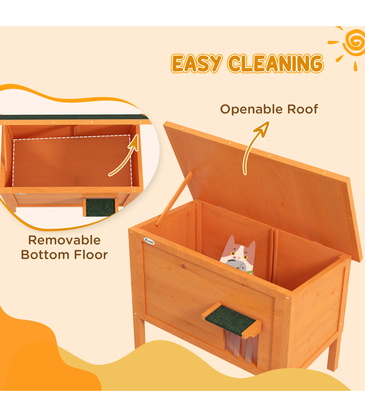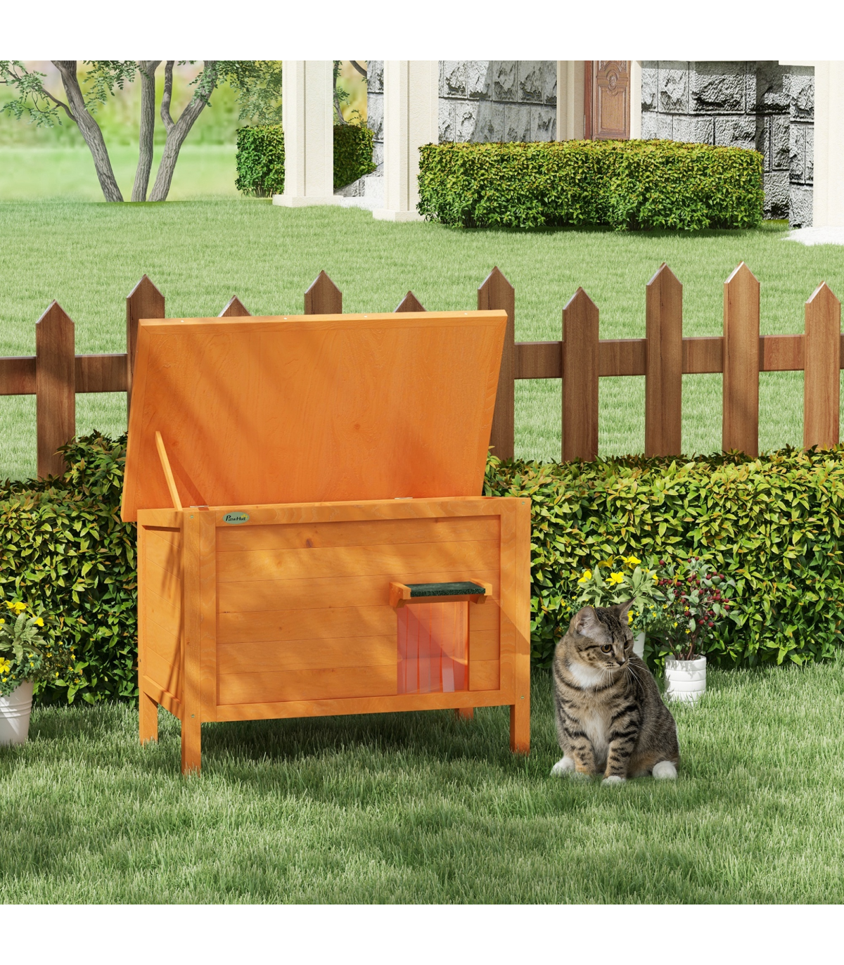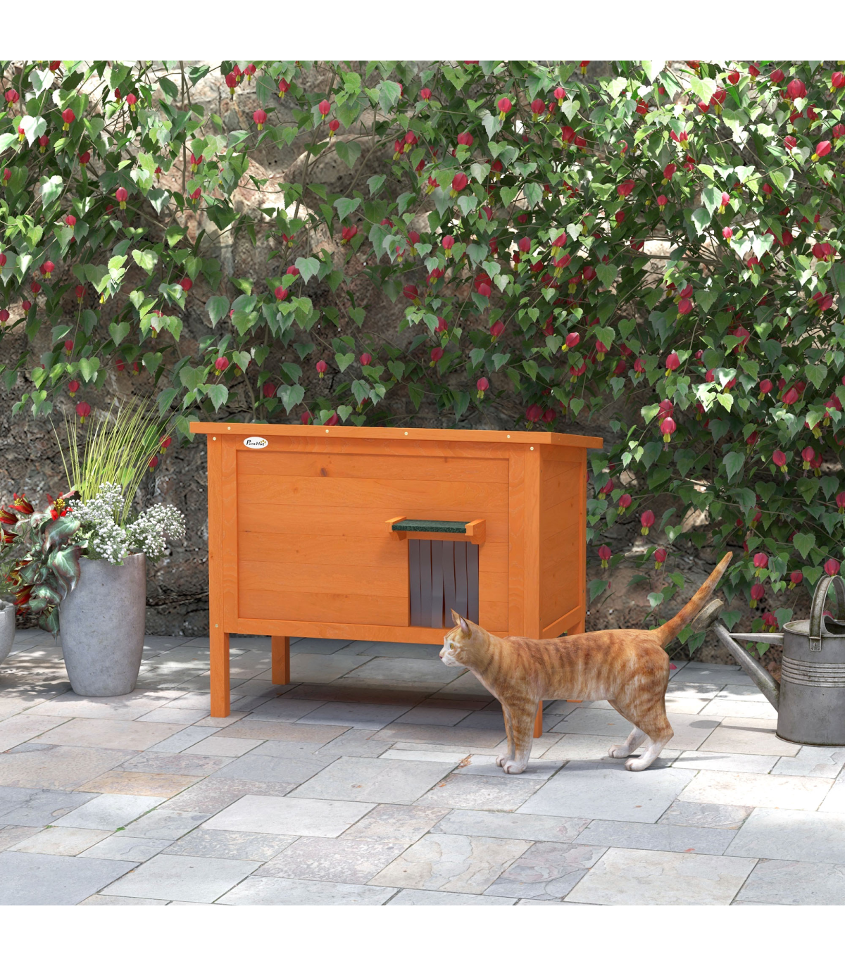 PawHut Outdoor Feral Cat House Insulated w/ Openable Roof - Orange