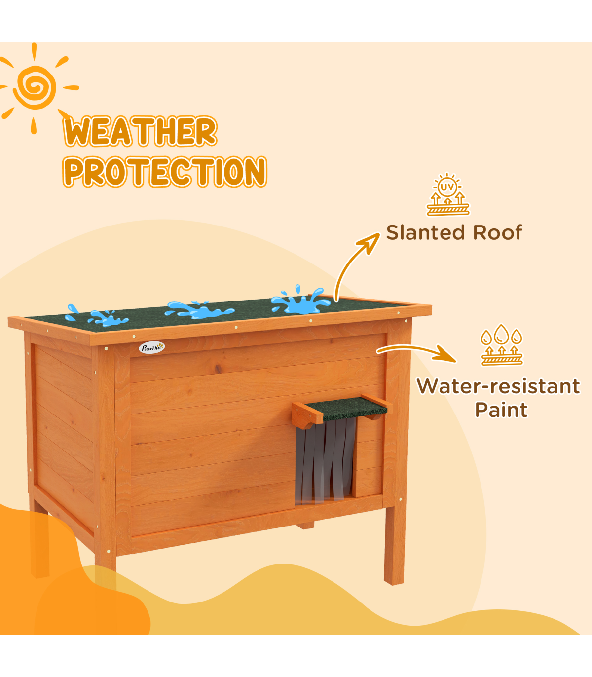 Invest in your pet's happiness with our PawHut outdoor cat house. Crafted for cosiness, its foam insulation offers warmth, whilst the slanted asphalt roof shields from unpredictable weather – suitable for outdoors. With a middle panel entrance and a front door, feline friends can come and go as they please. Gift your pet a serene sanctuary, turning your outdoor space into a wonderful haven.