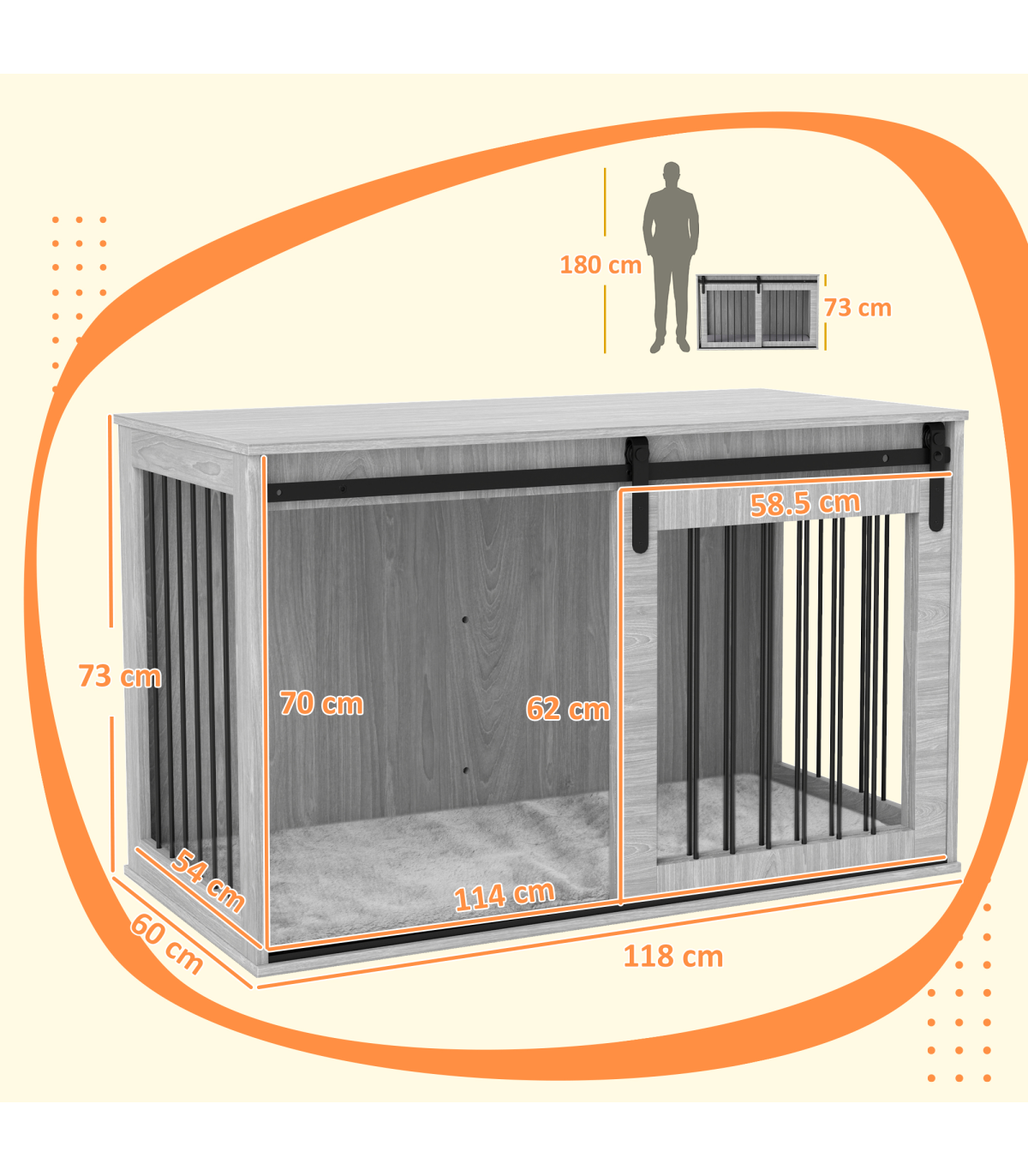 ● Overall dimensions: 73H x 118L x 60Wcm