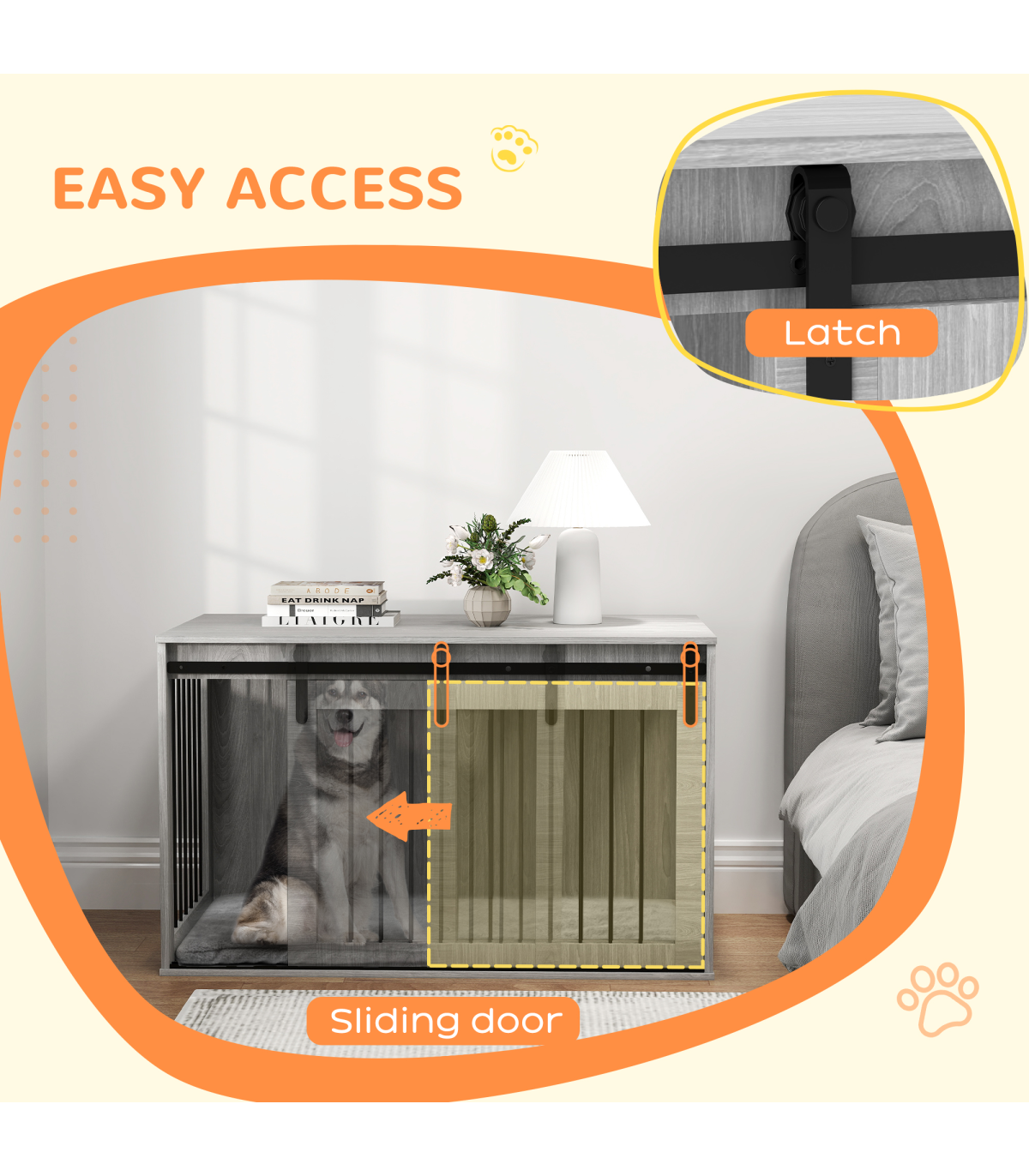 ● A sliding with latch, ensuring pets remain safely inside when needed