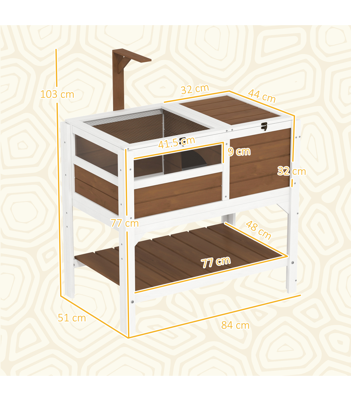 ● Main house: 32H x 44L x 32Wcm, 0.14m²(Area)