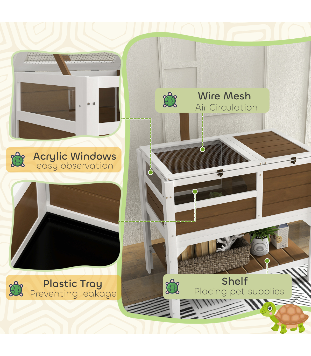 ● Acrylic windows let you watch your pet in their habitat