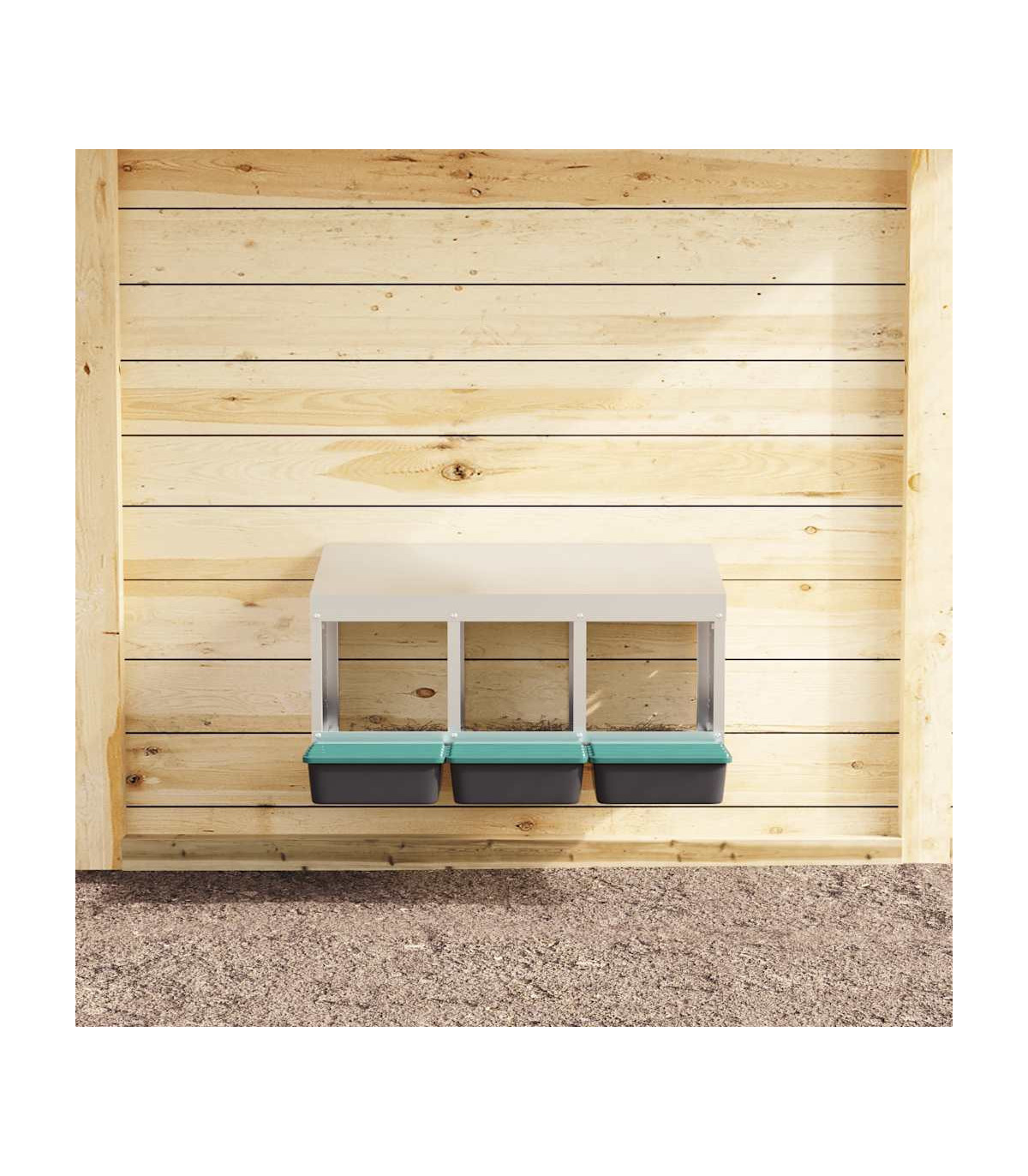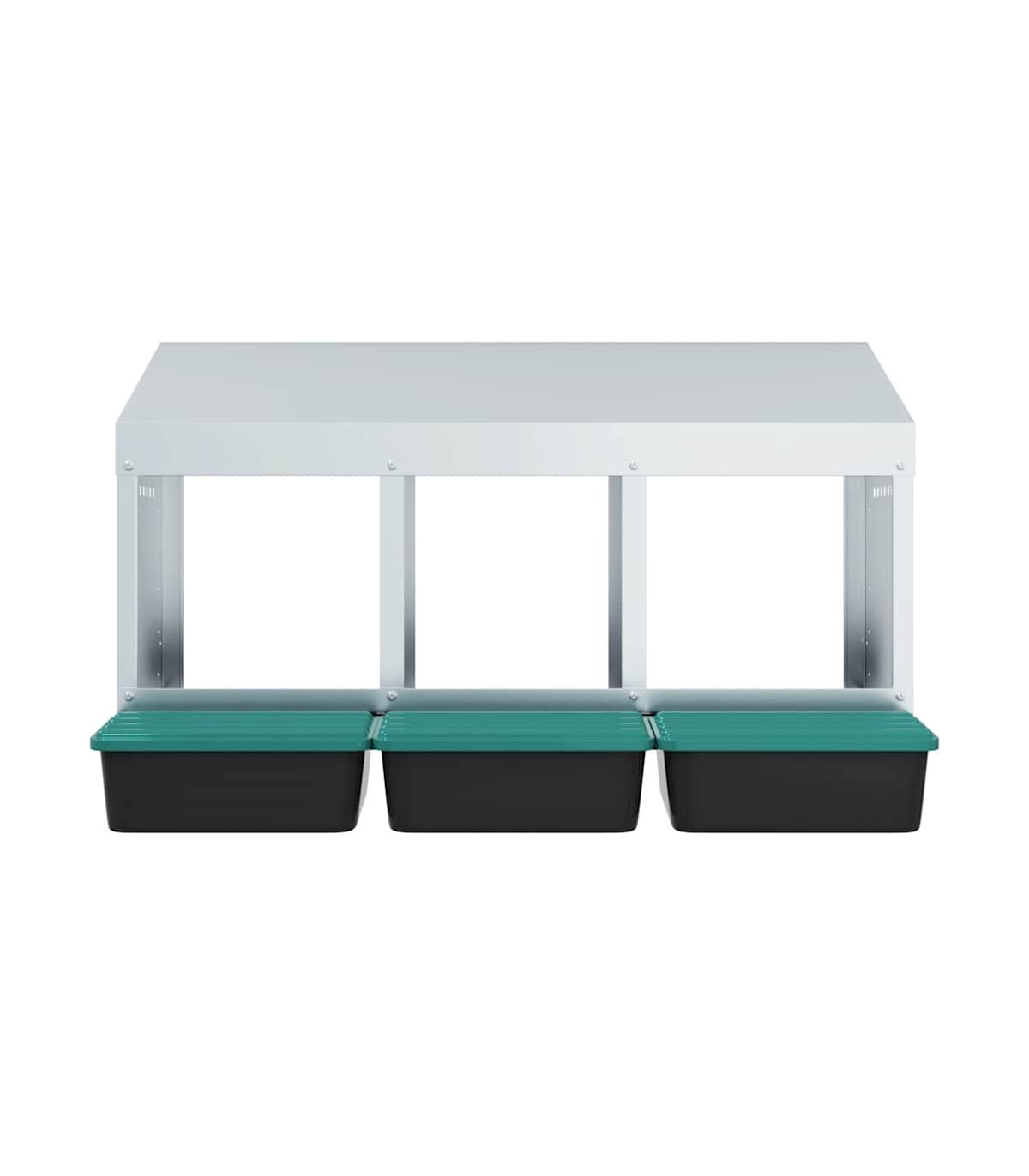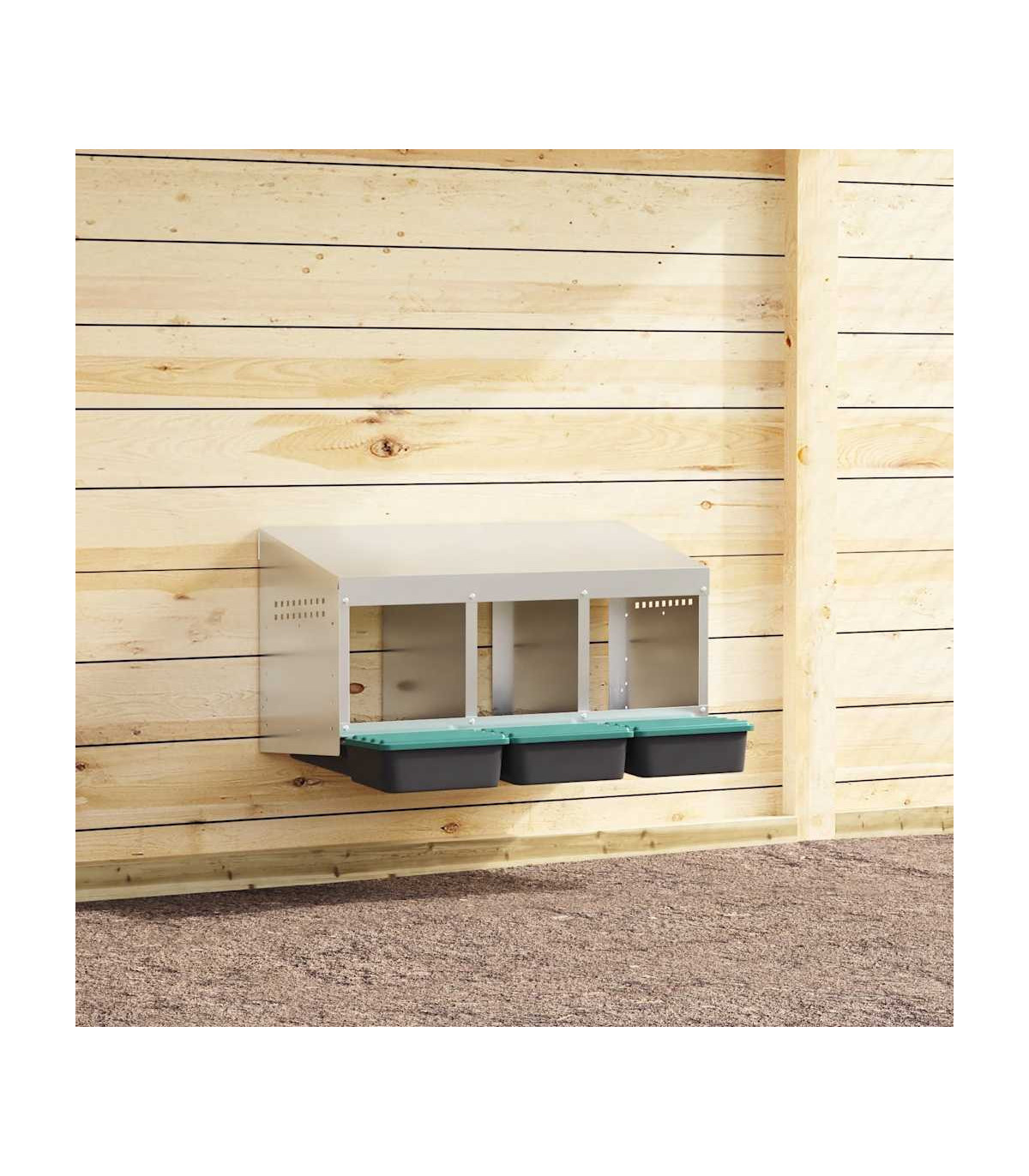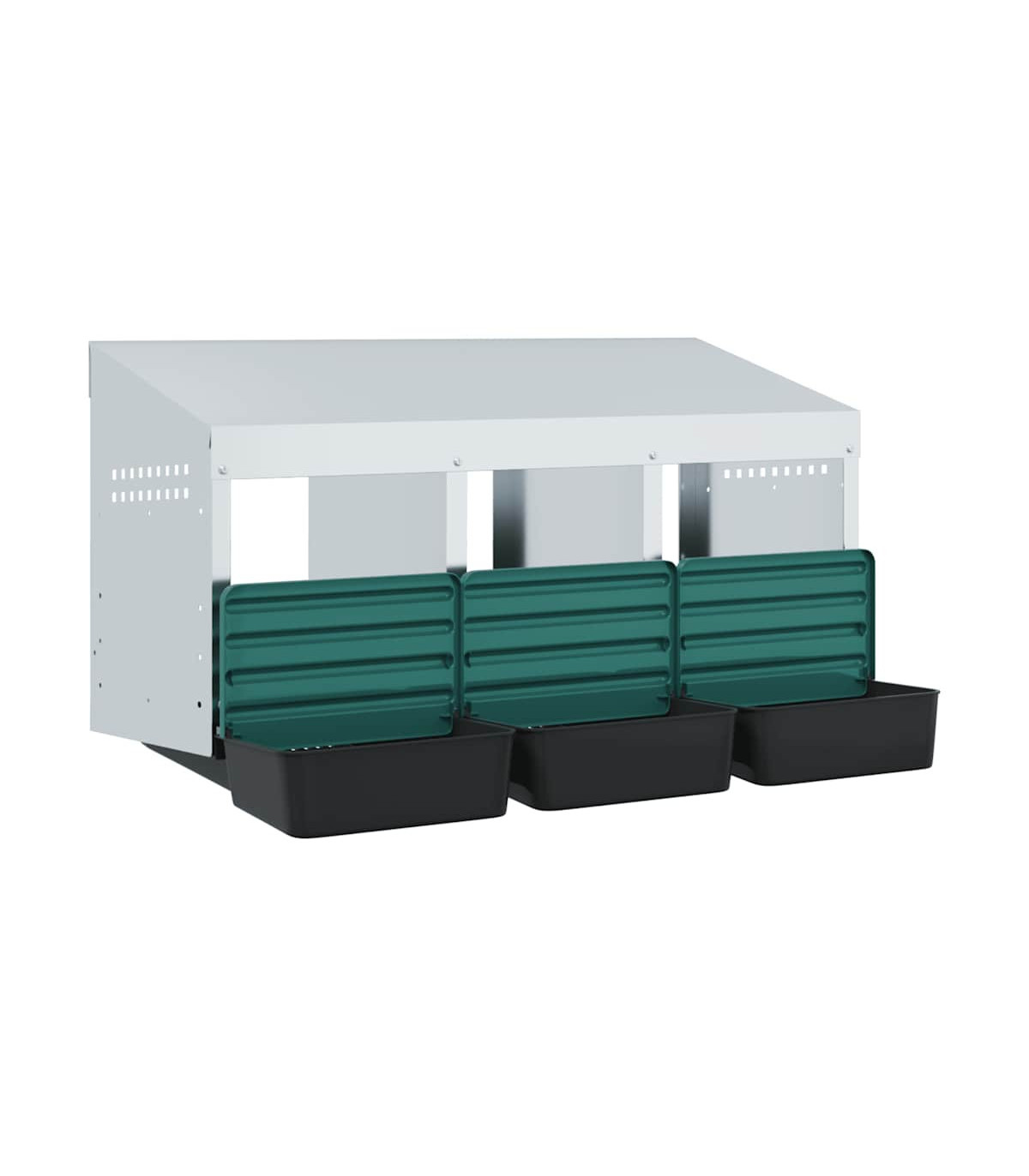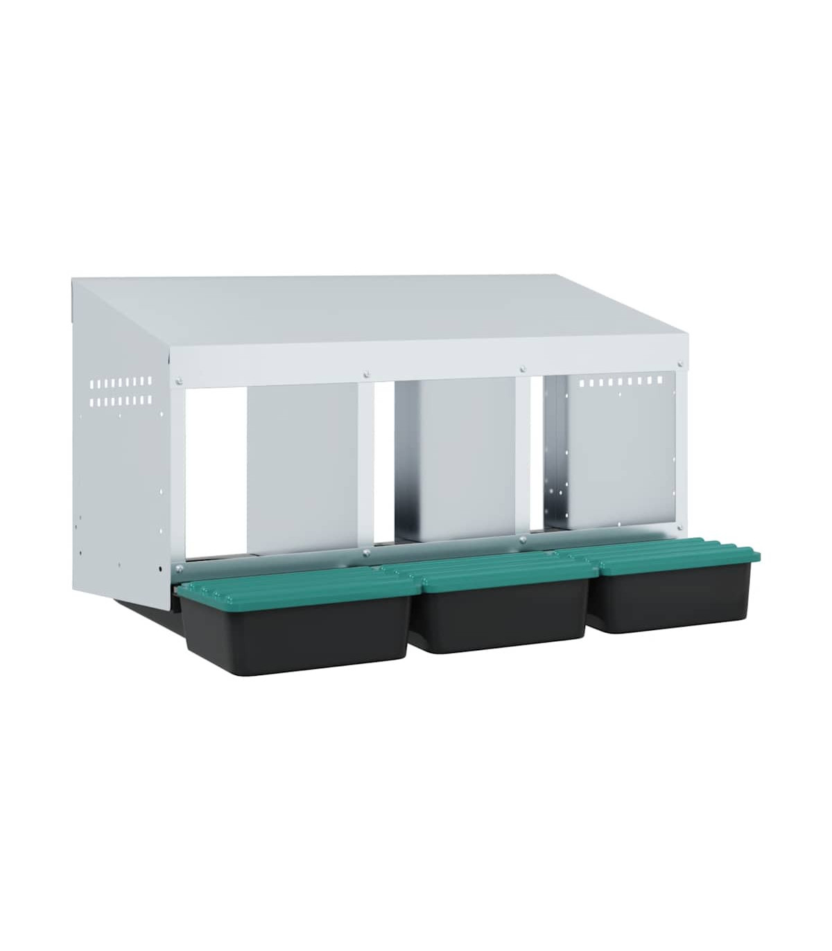 Upgrade your poultry farming experience with the chicken nesting box, providing hens with private, comfortable laying space. Robust and durable material: Crafted from galvanised steel and sturdy polypropylene plastic, this nesting box is built to last, offering long-lasting performance and protection for your chickens against harsh outdoor conditions.Convenient egg collection: The easy-lift lid and roll-out design allow for effortless egg collection while keeping the chickens undisturbed. The thoughtful design promotes a calm environment for your flock, making egg collection smooth, hassle-free, and easy to maintain.Space-saving design: The wall-mounted structure of this chicken nesting box helps optimise space in your coop, allowing for more room for your chickens to roam while providing them with a comfortable and secure spot to lay eggs.Thoughtful ventilation: The nesting box is designed with air vents and an open front to ensure optimal airflow, maintaining a dry, odour-free, and comfortable environment for your chickens while preventing moisture and odour buildup.Easy to install: The nesting box is easy to install, as it includes all necessary installation accessories. It can be mounted on surfaces such as concrete walls, brick walls, and plasterboards. Follow the included instructions for a simple installation process. Good to know:To avoid scratches, it is recommended to wear gloves during installation.