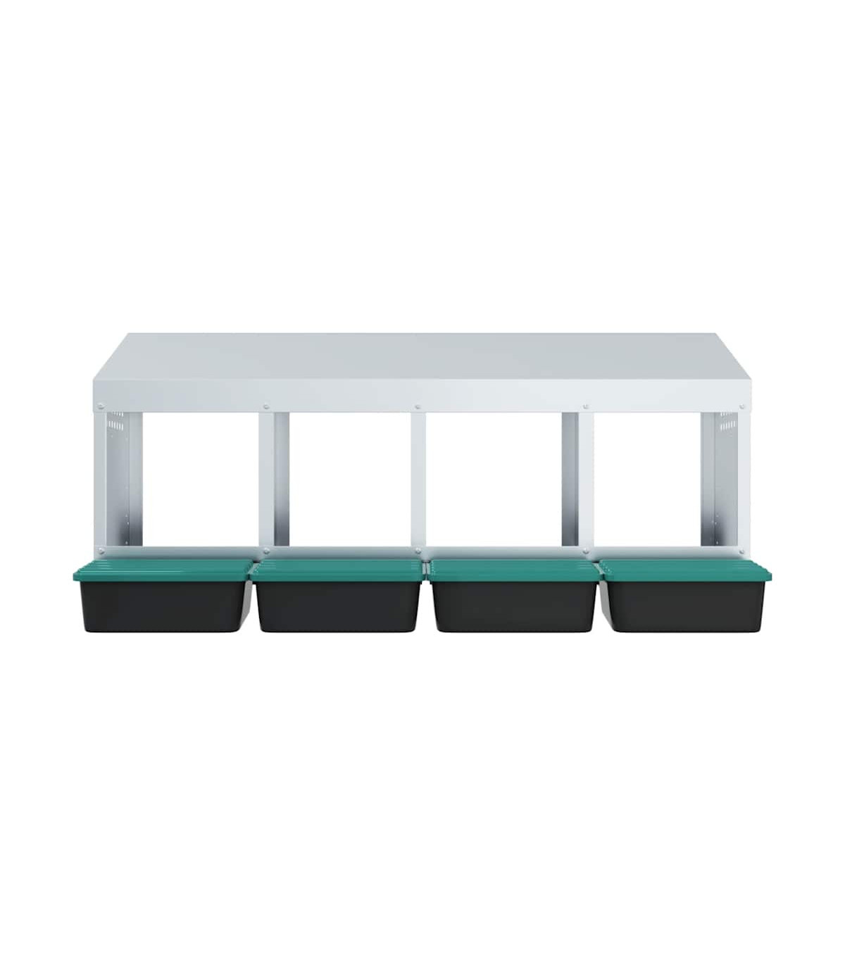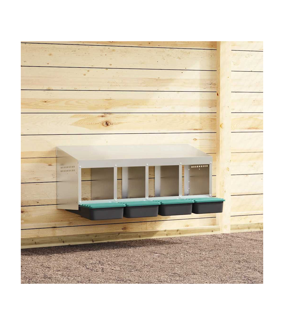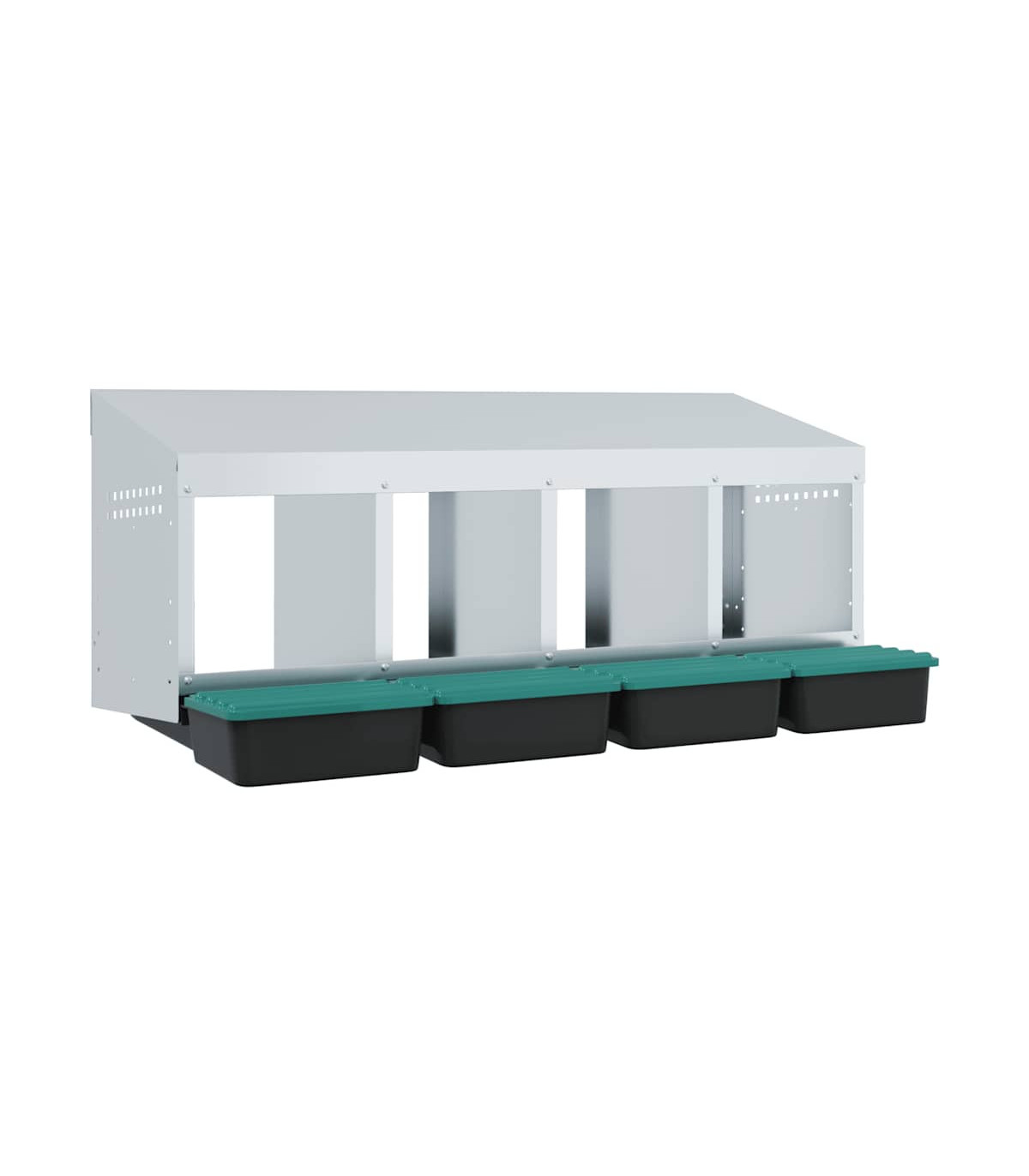 Upgrade your poultry farming experience with the chicken nesting box, providing hens with private, comfortable laying space. Robust and durable material: Crafted from galvanised steel and sturdy polypropylene plastic, this nesting box is built to last, offering long-lasting performance and protection for your chickens against harsh outdoor conditions.Convenient egg collection: The easy-lift lid and roll-out design allow for effortless egg collection while keeping the chickens undisturbed. The thoughtful design promotes a calm environment for your flock, making egg collection smooth, hassle-free, and easy to maintain.Space-saving design: The wall-mounted structure of this chicken nesting box helps optimise space in your coop, allowing for more room for your chickens to roam while providing them with a comfortable and secure spot to lay eggs.Thoughtful ventilation: The nesting box is designed with air vents and an open front to ensure optimal airflow, maintaining a dry, odour-free, and comfortable environment for your chickens while preventing moisture and odour buildup.Easy to install: The nesting box is easy to install, as it includes all necessary installation accessories. It can be mounted on surfaces such as concrete walls, brick walls, and plasterboards. Follow the included instructions for a simple installation process. Good to know:To avoid scratches, it is recommended to wear gloves during installation.