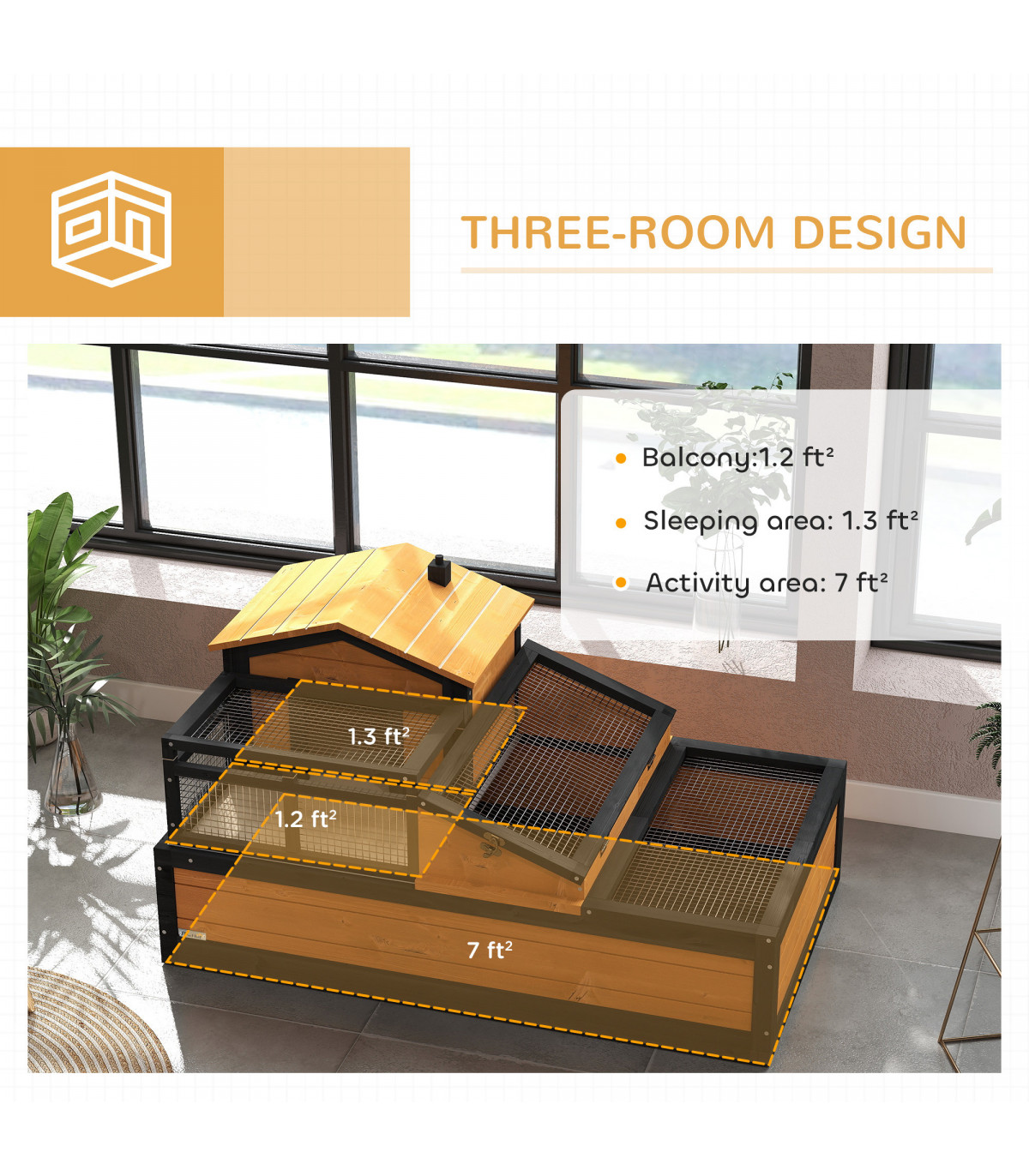 ● Run cage: 21.5H x 108L x 61Wcm, area: 0.65m²