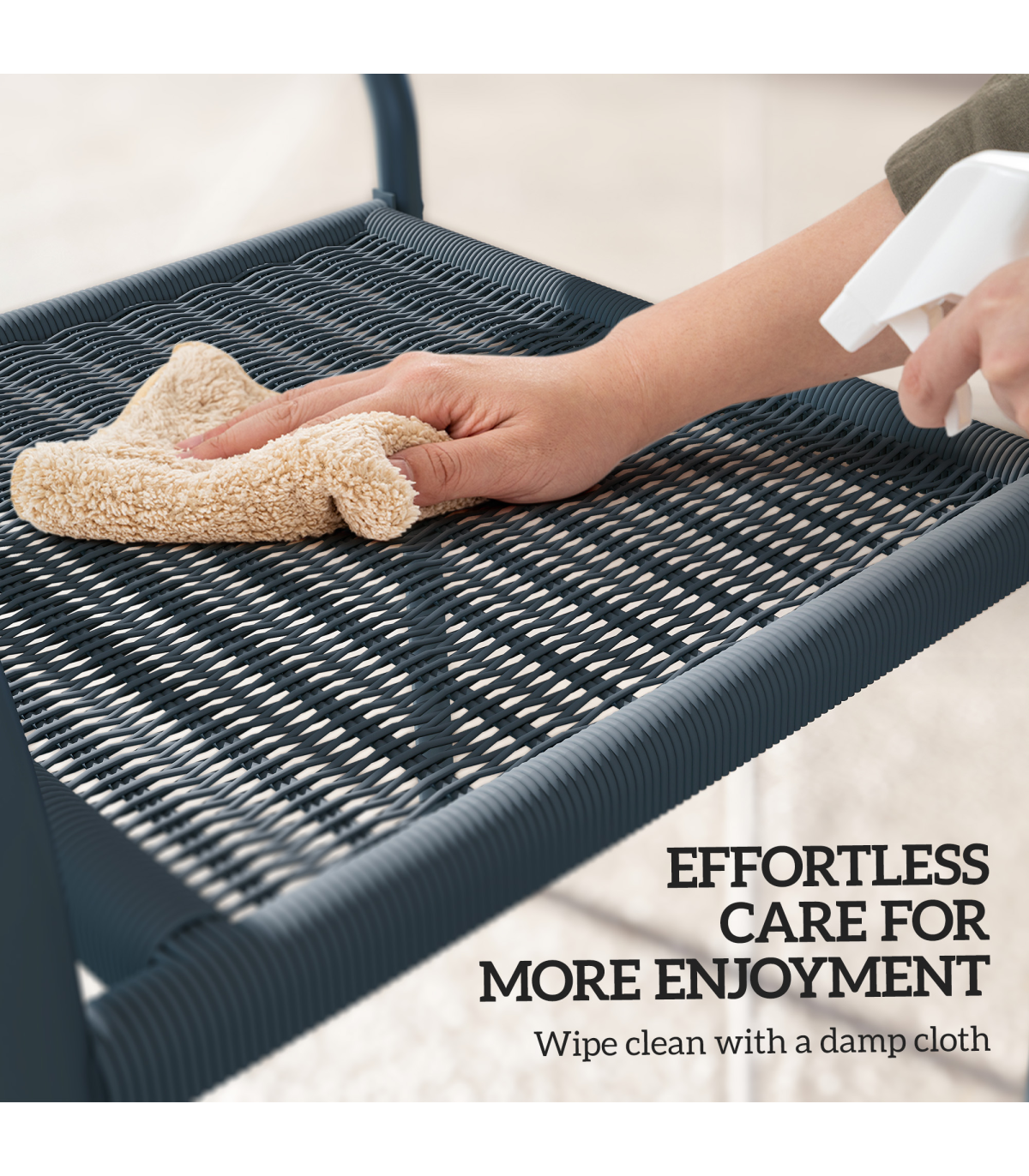 ● Powder-coated steel frame resists rust, foot pads ensure stability