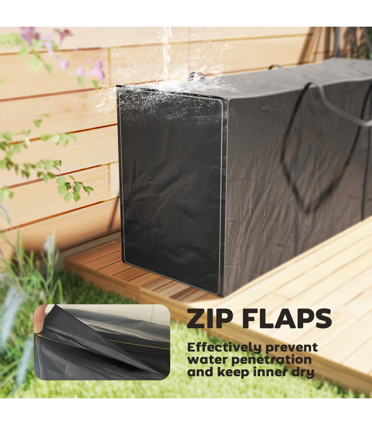 ● Zip flaps prevent water from seeping through the zip gap