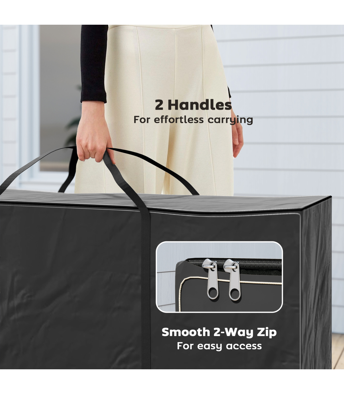 ● Two tough handles for effortless carrying and moving