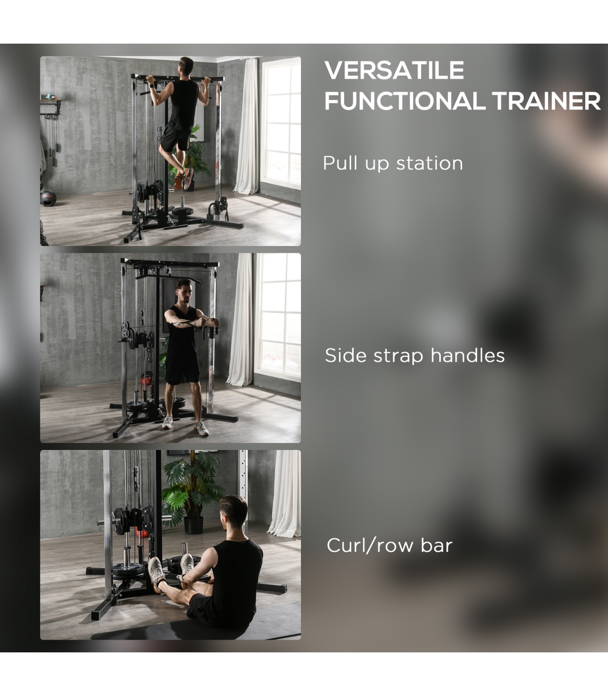 ● Includes high and low pulleys and a multi-grip pull-up station