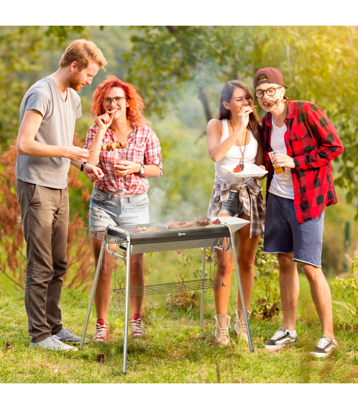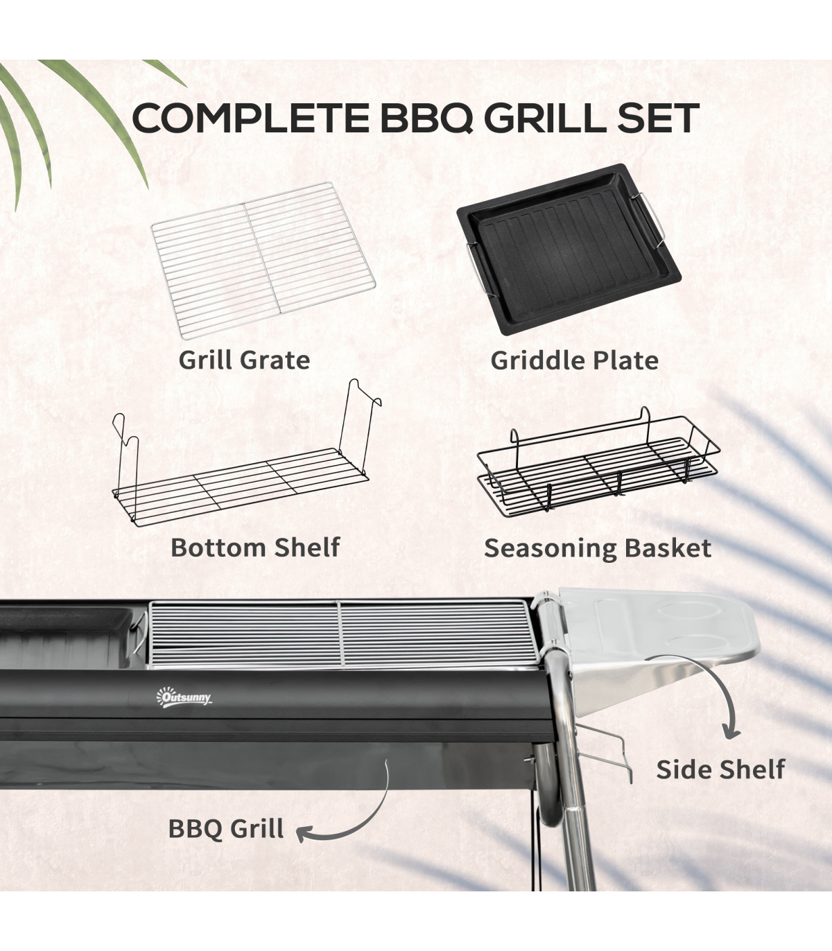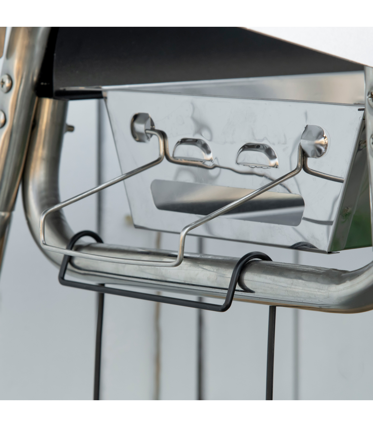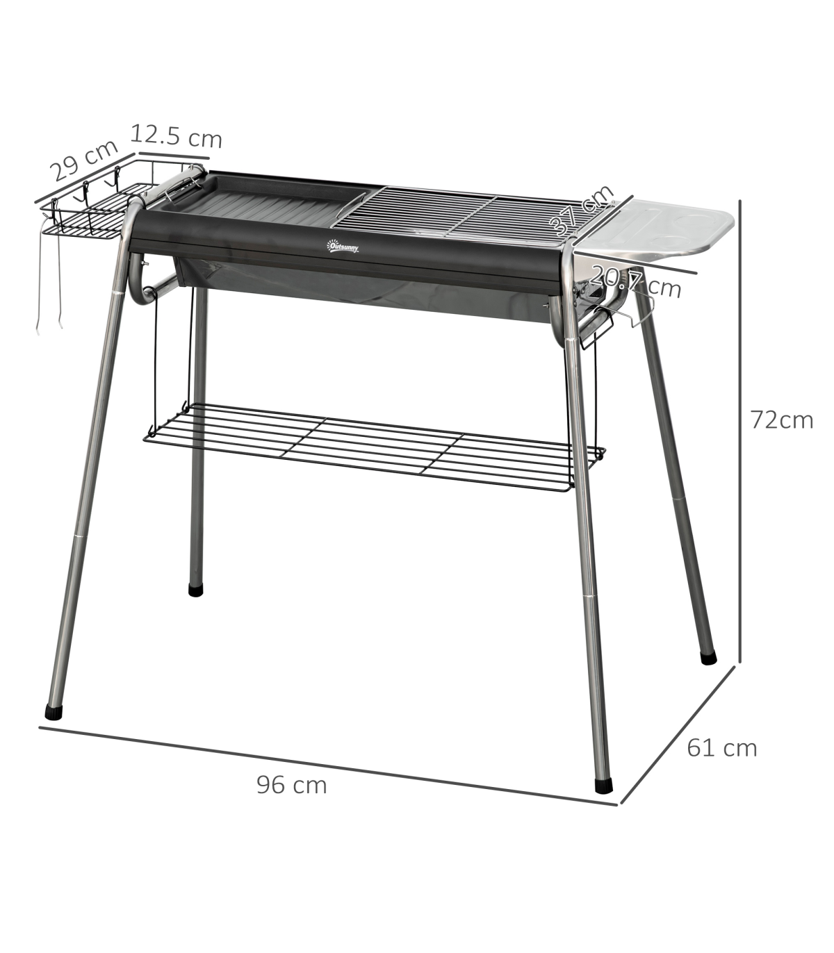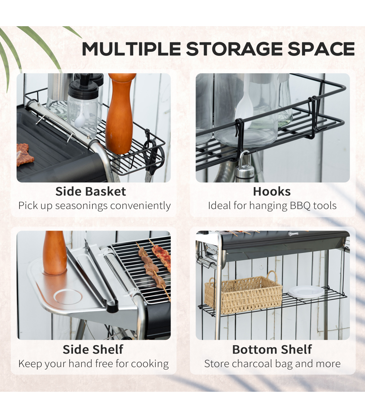 ● Side basket with hooks, side and bottom shelves to keep seasonings, utensils and more at hands