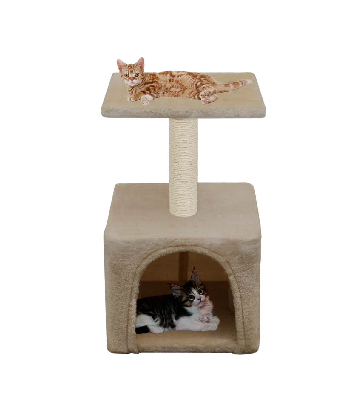 With this high-quality cat tree, your cats can scratch, perch, hide, climb and relax to their heart's content. It will suit any decor. The cat scratching tree will also give your cats the chance to stretch and exercise, especially in the cold winter months when they are stuck indoors. The plush, carpeted surface is highly comfortable, and the scratch pole is wrapped in sisal rope. It also has a comfortable house and a platform to keep your little friends entertained. The base is sturdy and stable. It is suitable for kittens.