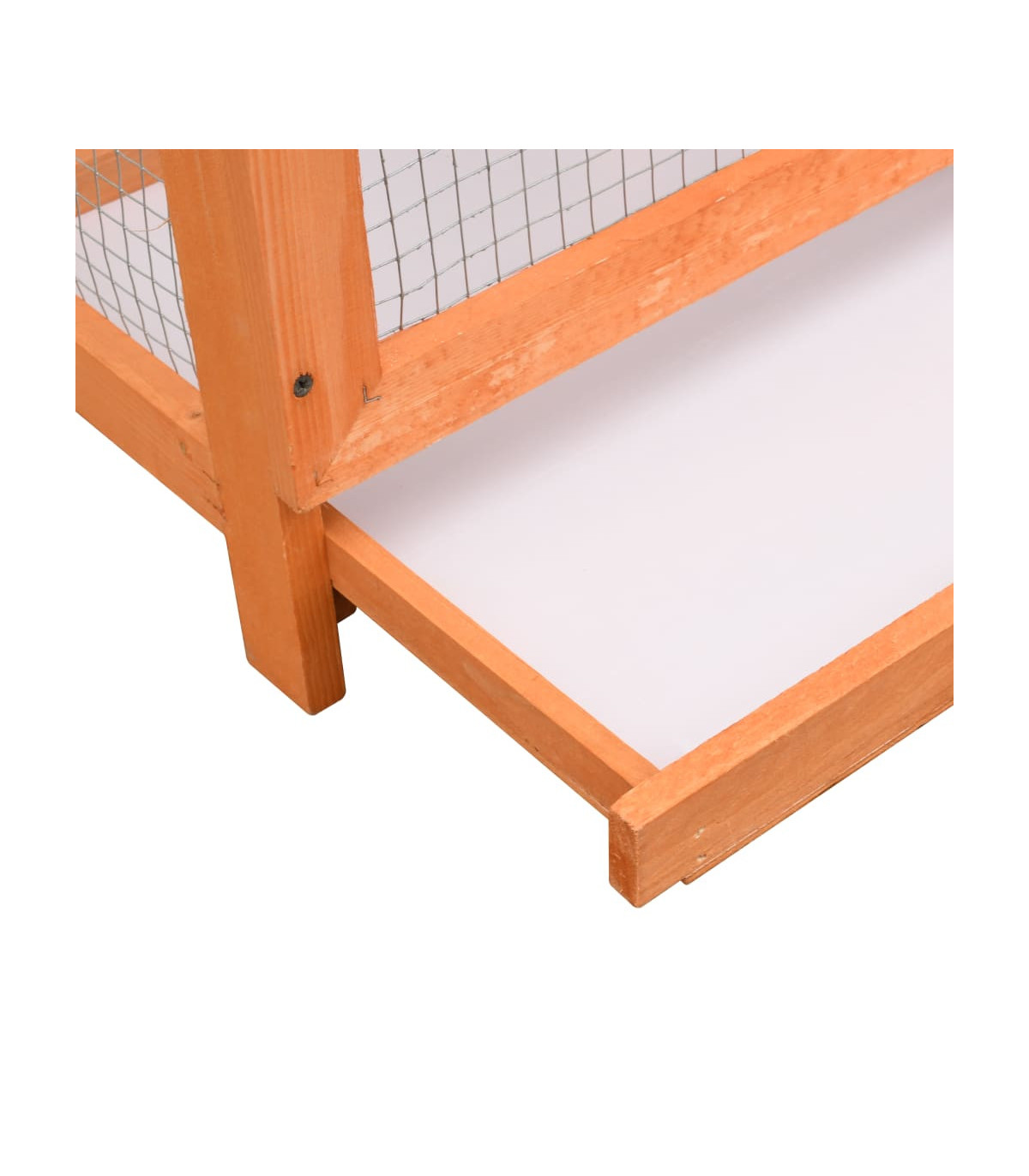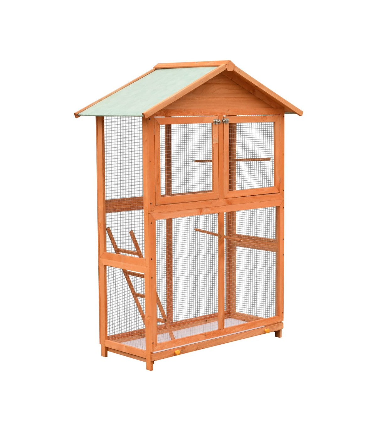 This wooden bird house provides a large, cosy place for your birds to fly and play safely. This high-quality aviary provides plenty of exercise space for your birds, while the tight iron wire mesh all around helps prevent mischief and unexpected accidents. The construction of iron wire grid allows you to observe the birds and guarantees your birds a wide field of view and enough fresh air. With a solid wooden frame, the outdoor aviary is strong and durable. The green water-resistant fabric on the roof keeps rain away. A ladder allows the birds to ascent and descent easily. A pull-out tray at the bottom of the bird cage makes cleaning easy. The bird cage is easy to assemble.