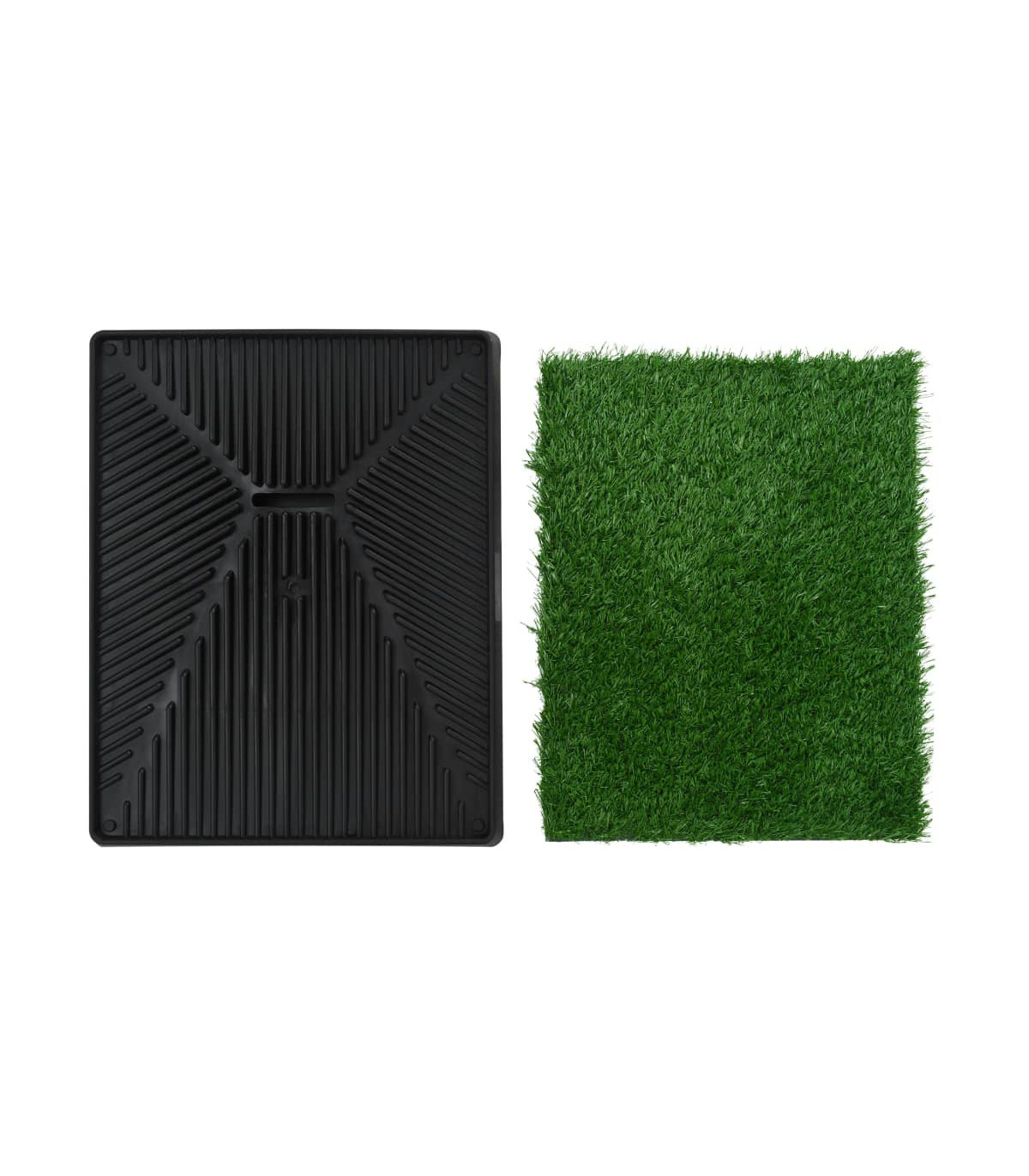 Our pet toilet with tray and artificial turf is ideal for effectively assisting you with the toilet training of your pets! This grass mat perfectly simulates the looking and feeling of real grass, meaning that your dogs have no problem in relieving themselves on the artificial grass. The materials of the pet training toilet are safe for children and pets. Additionally, its grid tray can keep the liquid away from your pets, and then the liquid is caught in the removable, bottom tray, preventing spills and mess. The pet potty is easy to clean. Keep your home clean and familiarise the little pet with this dedicated and comfortable pet potty!