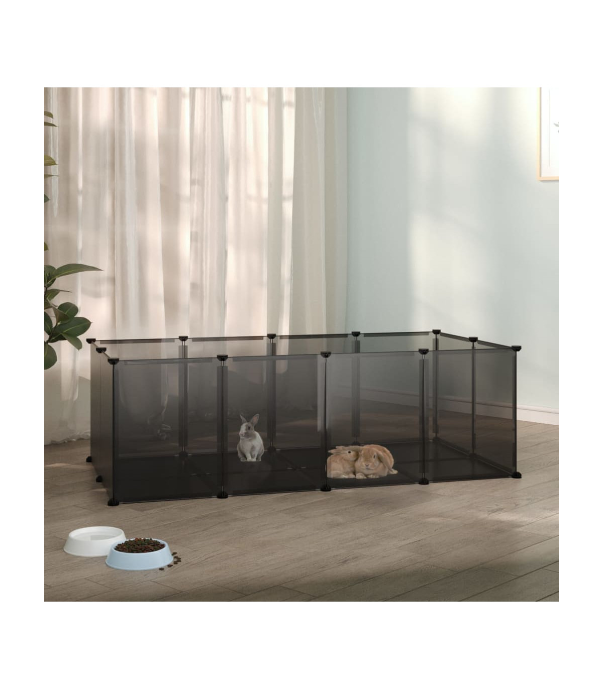 This small animal cage provides spacious and safe enclosed space for your pets to play and rest. Practical material: The animal house is made of PP plastic panels, which are water-resistant and need low maintenance.Strong and stable structure: The steel frames ensure sturdiness and stability.Spacious cage: The pet hutch has ample space for your little friends to rest and play while staying safe within the boundaries.User-friendly design: The pet cage can be assembled conveniently with the included wood hammer. When not in use, it is easy to separate the panels and stack them to save space.Suitable for small animals: This pet fence offers an excellent play spot for small animals like puppies, kittens, bunnies, hedgehogs, hamsters, guinea pigs, etc.