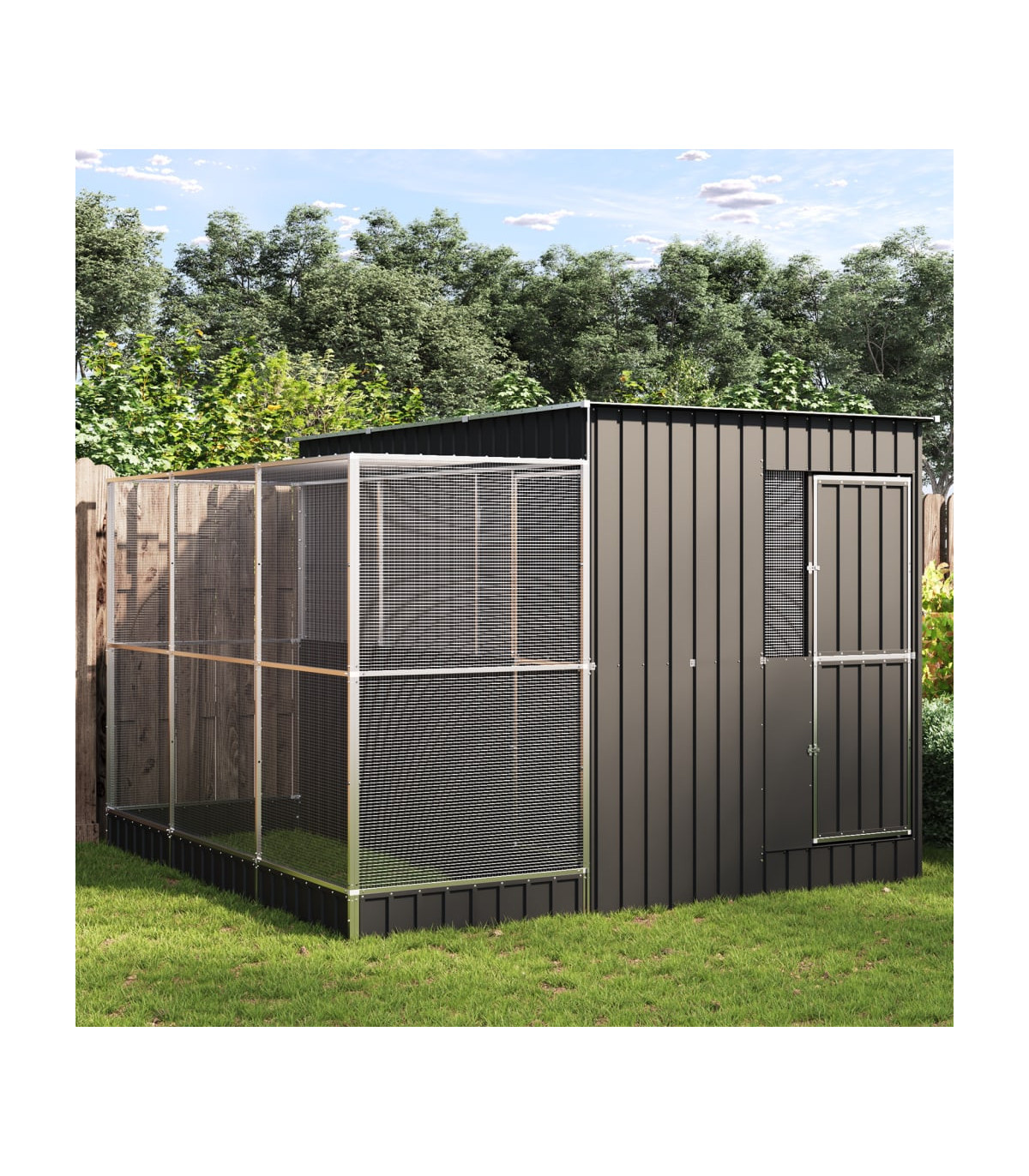 This aviary with extension provides a cosy and comfortable place for your birds to fly and play safely. Sturdy frame: Steel is an exceptionally hard and strong material. It offers sturdiness and stability. Galvanisation provides better protection against corrosion and is useful for products that'll be used outdoors as well as in harsh environments. Thanks to the sturdy galvanised steel construction, this bird aviary is built to last.Steel mesh grid: The budgie cage is equipped with steel mesh grids that prevent mischief and unexpected accidents. In addition, they also allow you to observe your birds daily and guarantee your birds a wide field of view and enough fresh air.Ample activity room: The parrot cage provides your birds with ample activity room to walk around, play and fly around with ease. Besides, it is also suitable for other small animals such as rabbits, ducks, chickens, geese, etc.Lockable door: The hinged door with a lockable system of the large bird cage ensures extra security and safety for your birds.