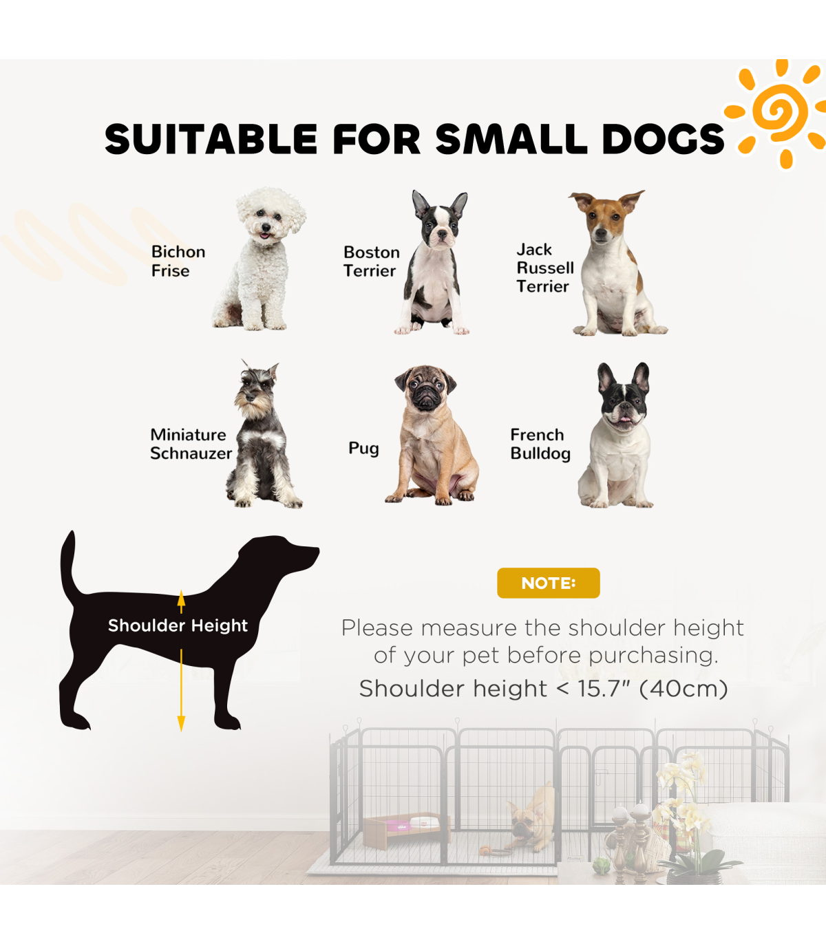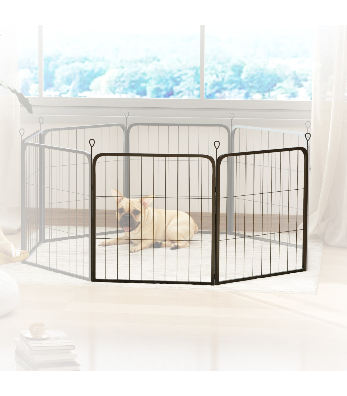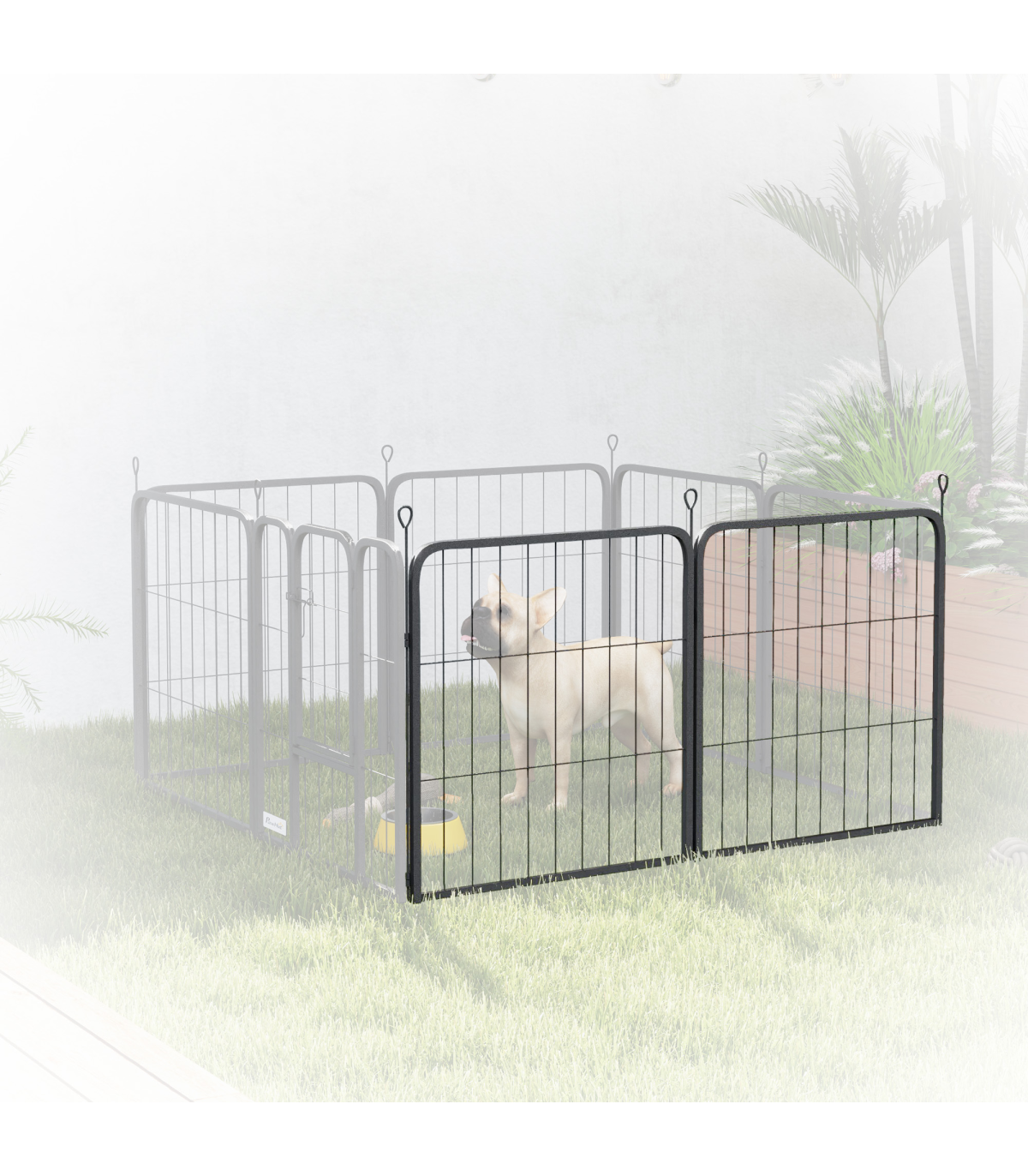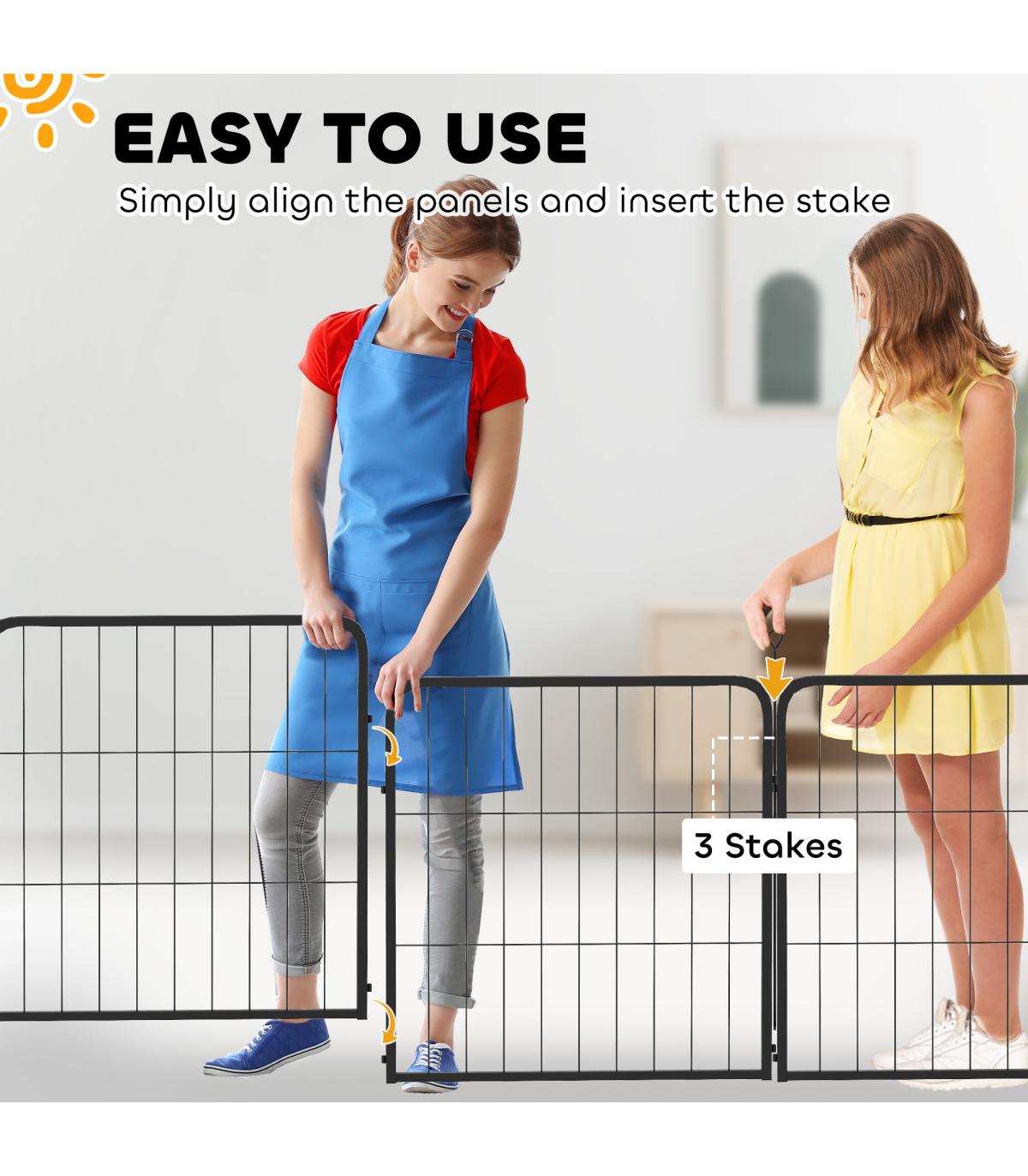 Discover the PawHut animal pen, a versatile heavy duty dog pen that can transform into various shapes like a square, rectangle, or L-shape to fit your space and pet’s needs. This indoor dog pen not only keeps your pet secure with two convenient doors but also folds easily for storage. Made from robust steel and anchored with 3 ground stakes, it's great for both indoor and outdoor setups.