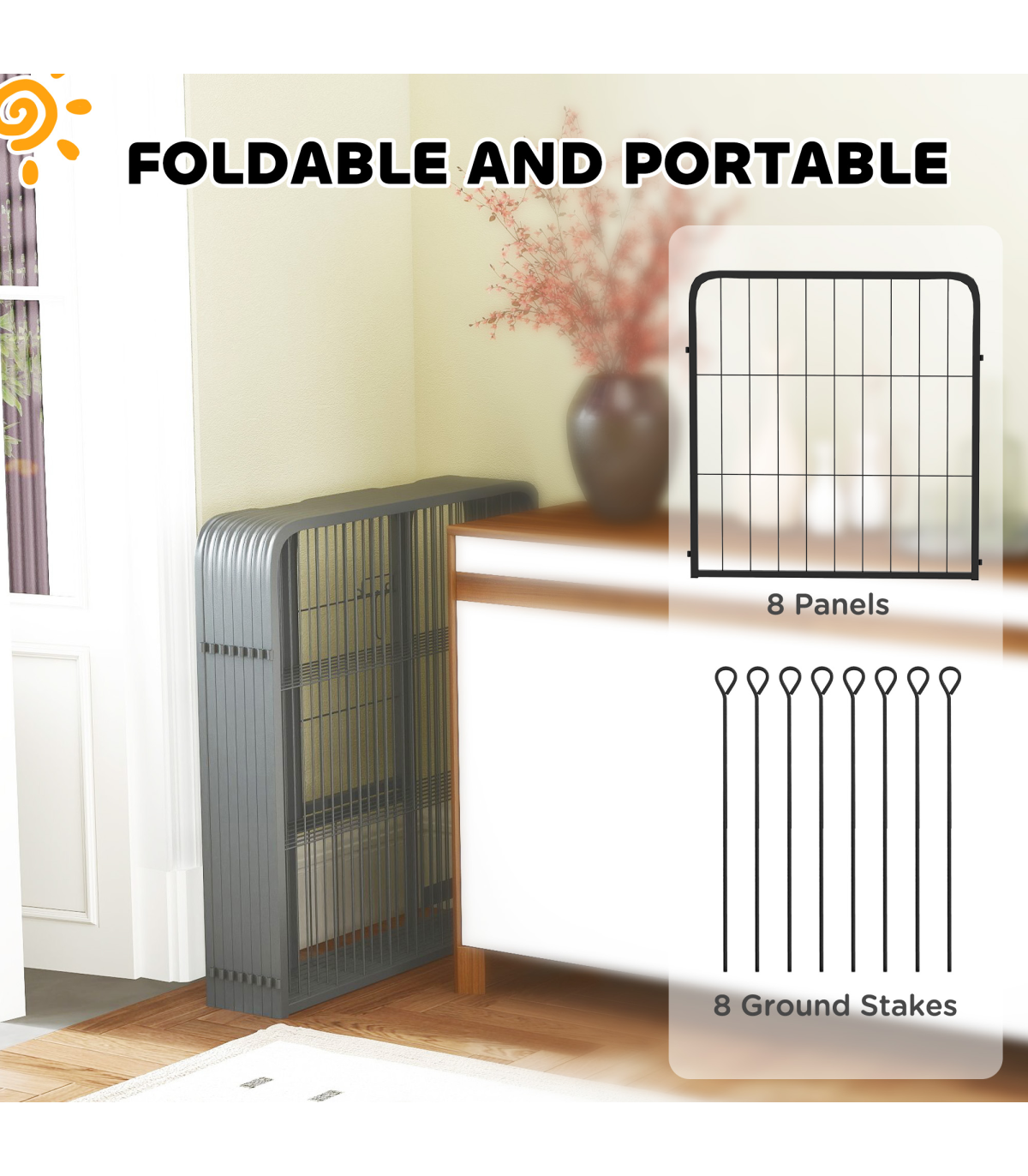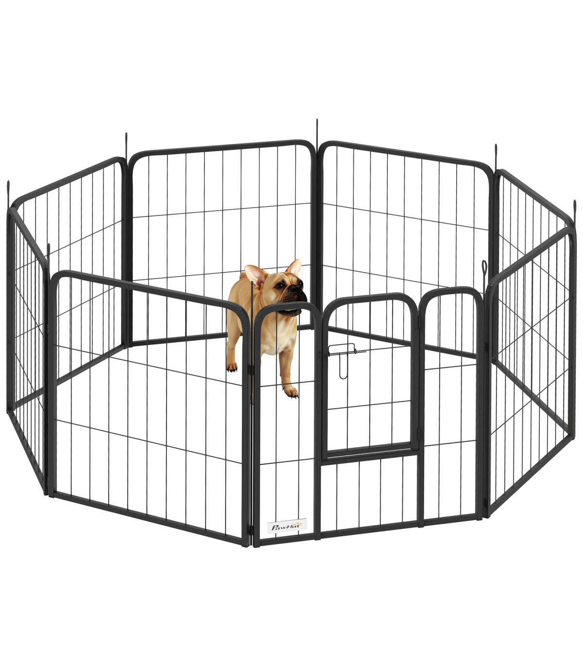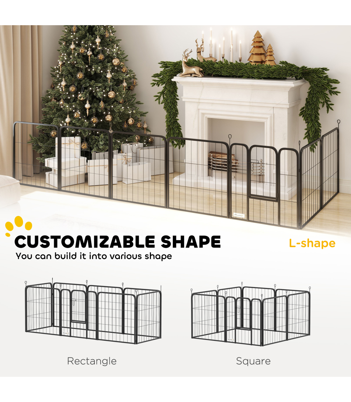 Discover the PawHut animal pen, a versatile heavy duty dog pen that can transform into various shapes like a square, rectangle, or L-shape to fit your space and pet’s needs. This indoor dog pen not only keeps your pet secure with two convenient doors but also folds easily for storage. Made from robust steel and anchored with 3 ground stakes, it's great for both indoor and outdoor setups.